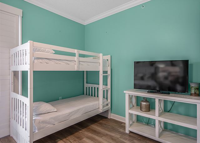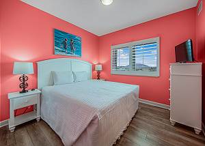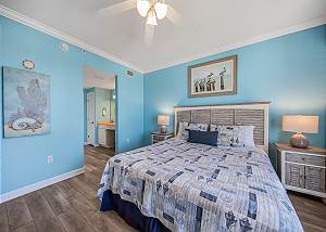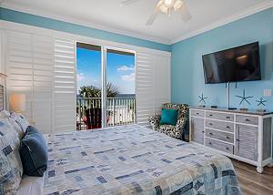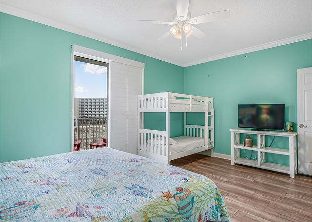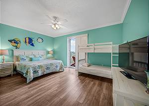 The master bedroom features a king-size bed and direct access to a private gulf-front balcony—perfect for enjoying your morning coffee or taking in unforgettable sunsets. The second master suite includes a king bed, a twin-size bunk bed, a private bathroom, and its own balcony, making it ideal for families with children. The third bedroom also offers a king bed, while the bonus room provides additional sleeping space with a queen bed. In the spacious living room, a queen sleeper sofa ensures everyone has a comfortable place to unwind after a day at the beach.