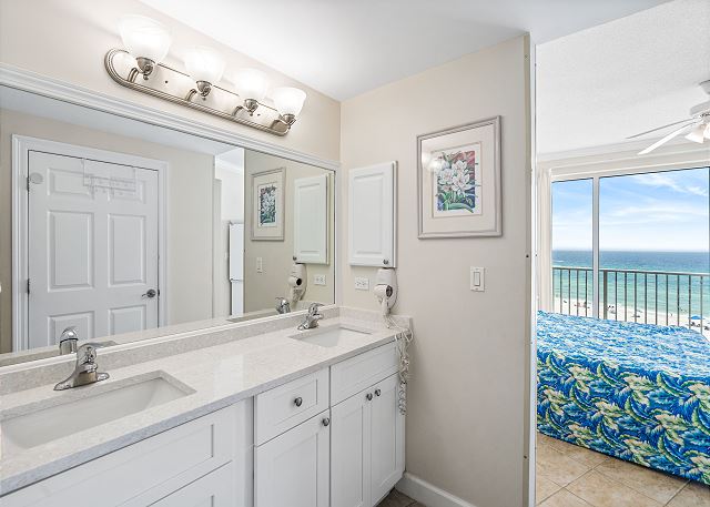 This two bedroom, two bathroom condo sleeps up to six guests. The master bedroom features a cozy, king size bed and opens up to your private gulf-front balcony. A comfy, queen size bed in the second bedroom and a queen sleeper sofa in the expansive living room means the whole family can unwind after a day spent playing in the waves. Best of all, a large, modern kitchen enables you to save money for fun by preparing your own meals.