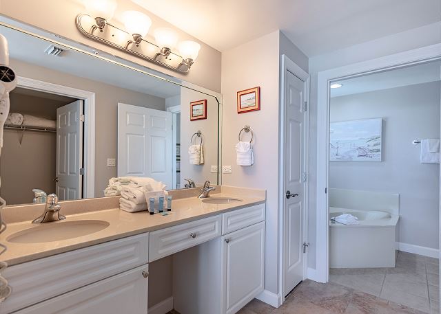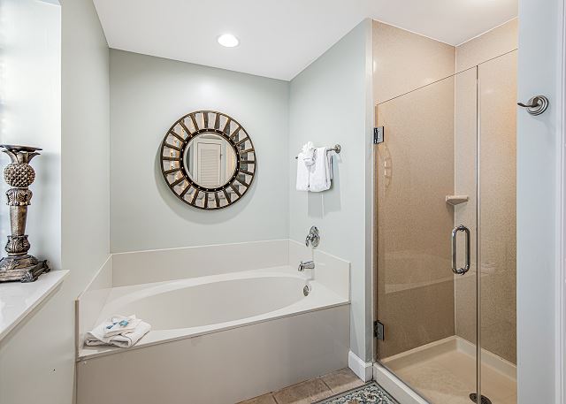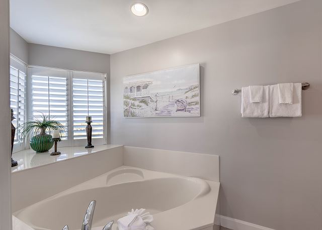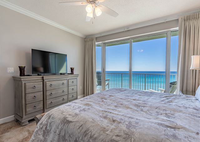 The master bedroom on the water has a king size bed and cable TV plus a great view of the ocean and access to the balcony. THE MASTER BEDROOM HAS A PRIVATE BATHROOM WITH A WALK IN SHOWER AND SEPARATE TUB.