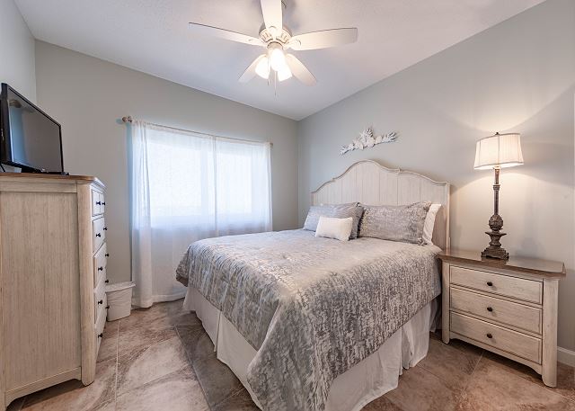 The 2nd bedroom has a KING size bed and flat screen cable tv on the wall.