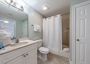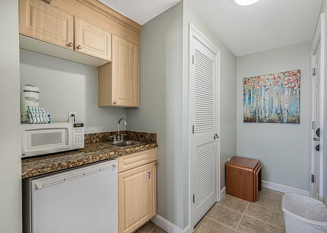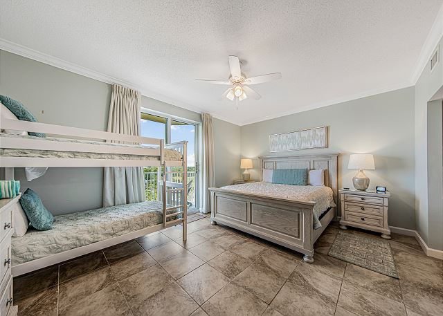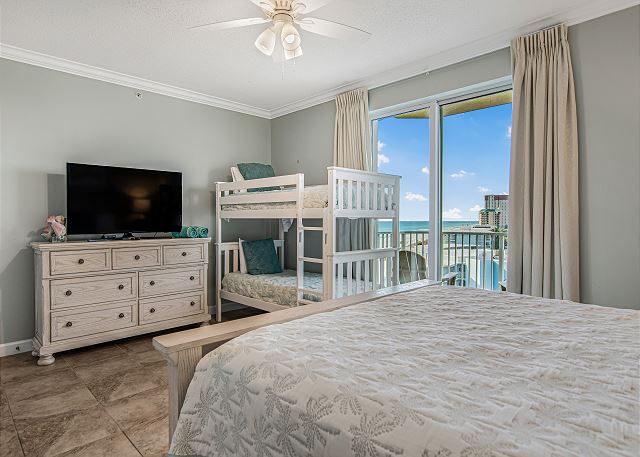 The 4th bedroom or the efficiency has a king size bed, twin size bunkbed, large flat screen cable TV, an ocean view and its own private balcony over looking the ocean. It has a private bathroom with a jacuzzi tub. It also has a kitchenette.