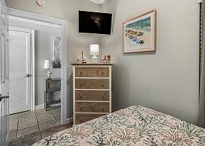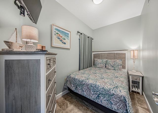 The 3rd bedroom has a Queen size bed and flat screen cable tv on the wall.