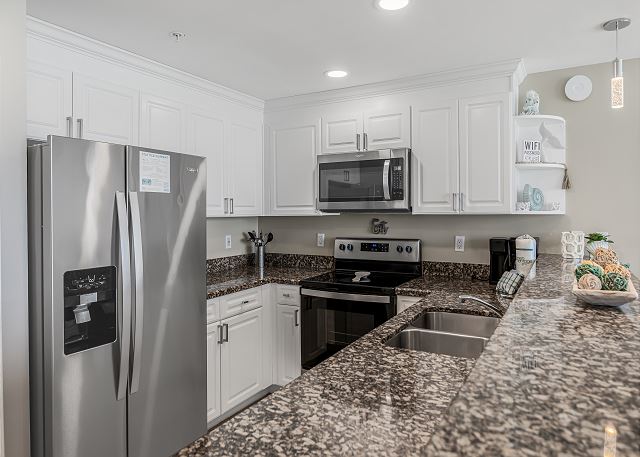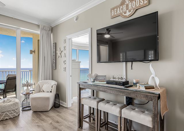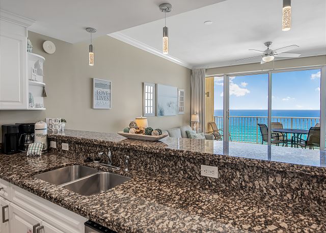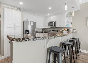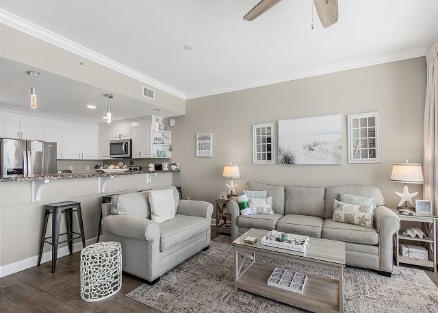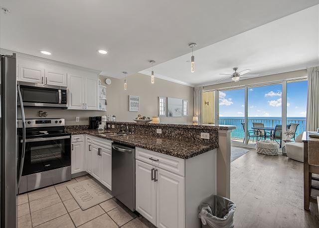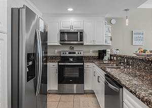 This two bedroom, two bathroom condo sleeps up to six guests. The master bedroom features a cozy, king size bed and opens up to your private gulf-front balcony. A comfy, queen size bed in the second bedroom and a queen sleeper sofa in the expansive living room means the whole family can unwind after a day spent playing in the waves. Best of all, a large, modern kitchen enables you to save money for fun by preparing your own meals.