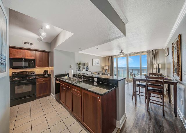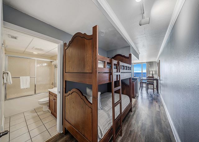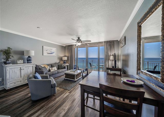 Beautifully decorated and spacious one bedroom one bath 12th floor unit! Sleeps 6 comfortably with a king size bed in the master, bunk area with 2 twin beds in the hallway and a pullout queen size sofa sleeper bed.