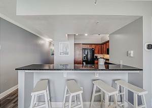 There is a Starbucks Coffee Shop and Deli, The Sky Bar Cocktail Lounge in the walkover above the street from the 2 very large parking garages. Hot Tubs, sauna, and steam room are on site that you don't find in other complexes.
