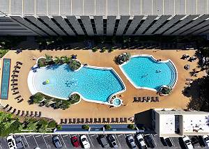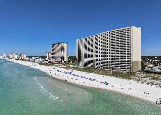 Exterior [48]Emerald Beach is a True Vacation Resort, not just a condominium complex. It has some of the BEST amenities In PCB. Featuring multiple pools. One pool area is very family oriented with 2 pools and hot tubs. 1 pool is a walk in pool with a Kids Splash Zone and a snack bar located between the 2 pools. There is a large Tiki Bar by the large Beach side pool and hot tubs. Starbucks & The Sky Bar are great for adults.