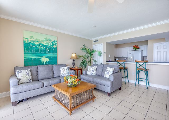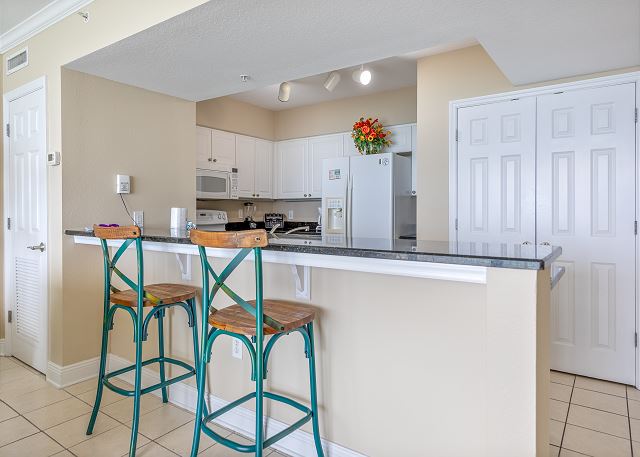 Unwind in this comfortable one bedroom wo bathrooms 15th floor unit! Sleeps 6 comfortably with a king size bed in the master, bunk area with 2 twin beds in the hallway and a pullout queen size sofa sleeper bed. Equipped with a fully-stocked kitchen with granite countertops, a washer and dryer and large flat screen TV's!