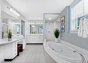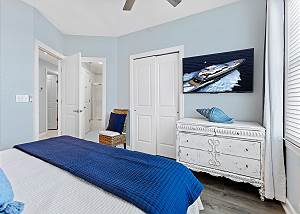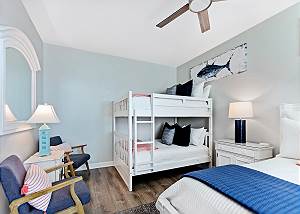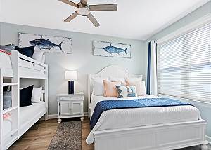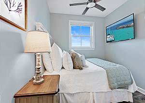 • Master Suite 2: King and a full size bunkbed, flat-screen TV, and a stunning view of the water.