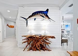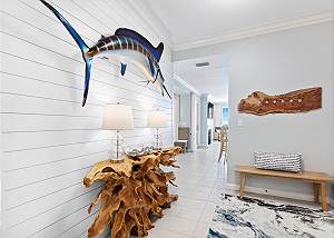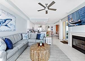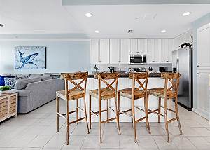 Gather in the dining area to enjoy meals together while overlooking the Gulf, or share stories in the stylish living room as the sun sets over the water.