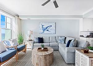 Step into 2,300 square feet of coastal luxury designed to showcase breathtaking views of the Gulf. Floor-to-ceiling sliding glass doors lead to an expansive 500-square-foot balcony, where you’ll find one of the best outdoor spaces on the beach — complete with room to grill, dine, entertain, or simply unwind while watching the waves.