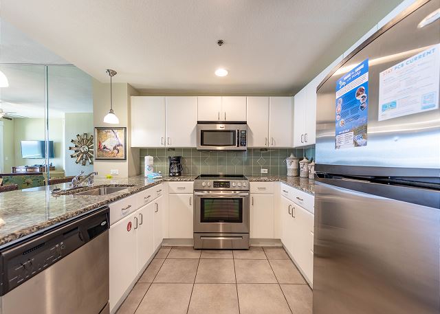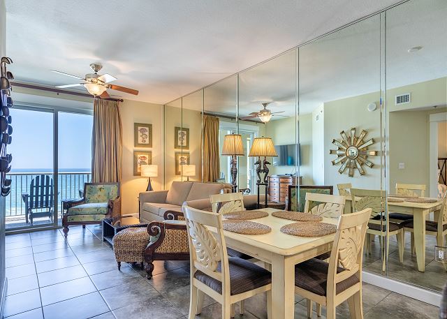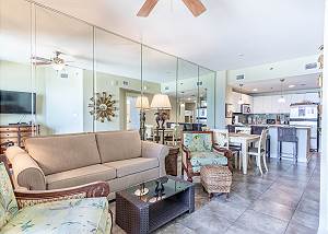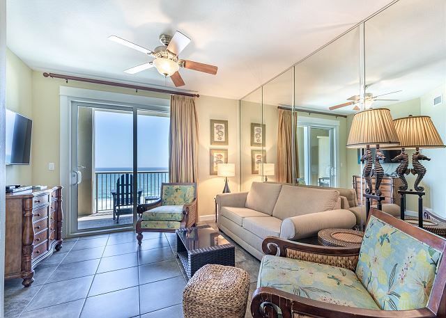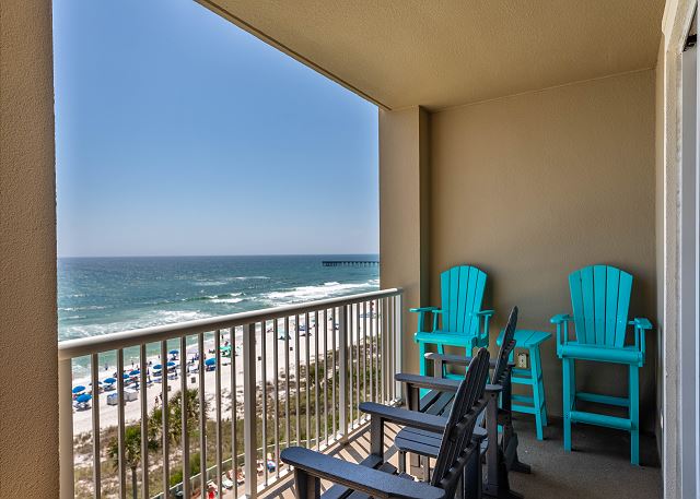 This two bedroom, two bathroom beachfront condo with a bonus nook was recently updated. The hideaway boasts new tile floors, granite countertops, stainless steel appliances plus large, flat screen TVs in the living room. The condo sleeps six thanks to a regal king size bed in the master bedroom, a comfy queen in the second bedroom and bunk beds in the cozy nook. You'll enjoy stunning gulf views from the spacious living room, kitchen AND the master bedroom. Why just look at the gulf when you can feel and smell it? Gulf breezes, warm Florida sunshine and fresh salt air await on your oversized balcony. It's big enough to accommodate your entire party!
