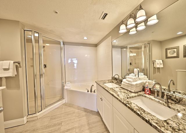 The oceanfront master offers a Jacuzzi tub as well as a shower.