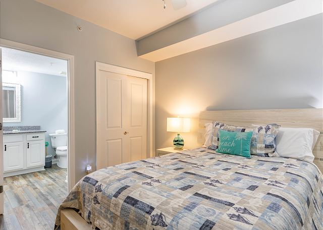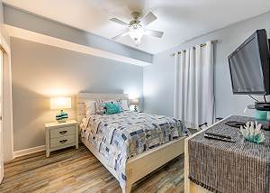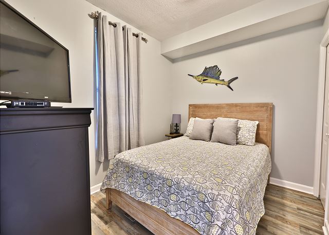 The second bedroom has a queen size bed.