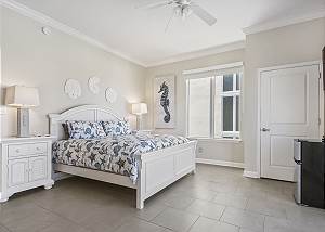 The 4TH BEDROOM or very large efficiency suite has a KING SIZE bed. It has an en suite large bathroom with a jacuzzi tub and walk in shower. It has a 50 inch SMART TV.