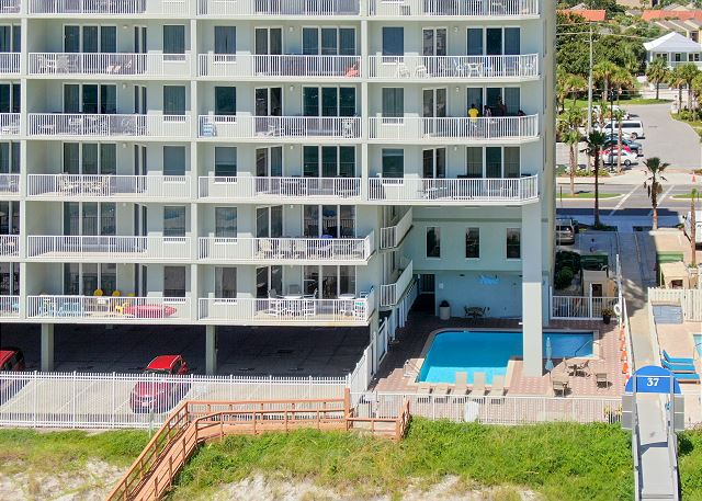 Includes FREE beach service 2 padded lounge chairs and large umbrella directly on the beach 3/1-10/31 (subject to beach conditions & weather permitting). A great bonus for our guests, it is up to a $40/day $240/week value. Just tell the person handing out the chair what unit you are staying in