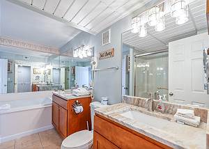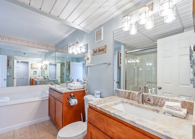 • Captain’s Cabin – King bed, en-suite spa bath with oversized soaking tub & shower, private patio to pool & beach