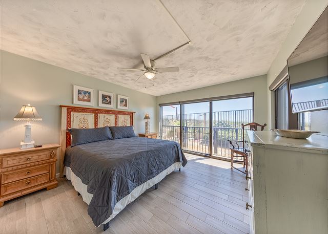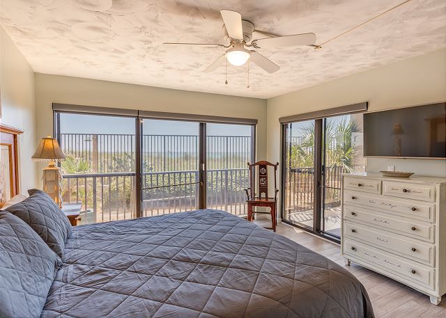 • Quartermaster’s Cabin – King bed, beach views from two walls of windows, sliding door to main patio, adjacent private bath
