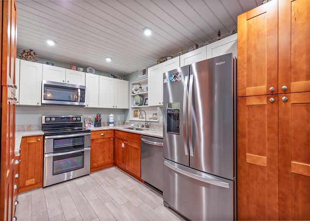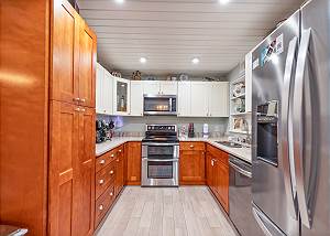 • Stainless steel appliances (double-oven range, large refrigerator with ice & water, microwave, dishwasher, extra ice maker)