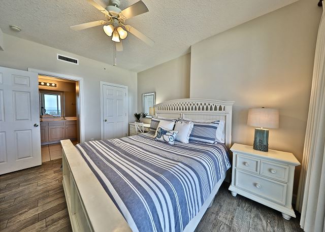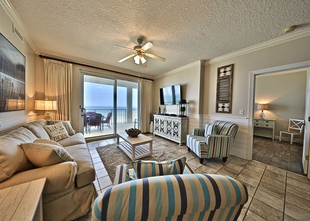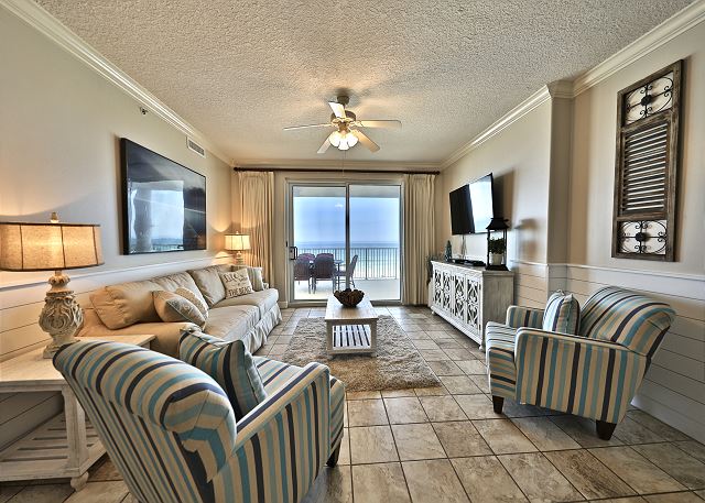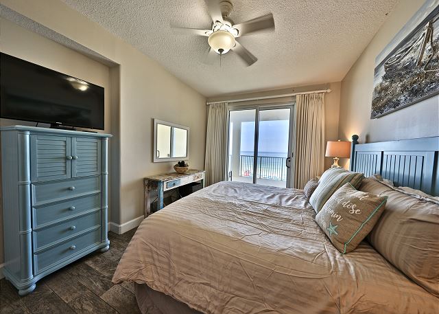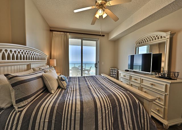Located on the forth floor of centrally located Ocean Ritz! With all of the amenities of home, plus the added pleasure of the Gulf of Mexico right out your back door, you may never leave Ocean Ritz once you check in! This condominium features four full bedrooms and four full bathrooms; Lots of room to spread out and really enjoy your vacation at the beach! These gulf-front balconies are really something to experience personally to fully appreciate! The size is unmatched in Panama City Beach! When you enter the condo, you'll be greeted by the kitchen featuring granite countertops, and all the cooking and baking utencils you could need. The kitchen overlooks the enormous dining and living spaces. The living room features a lovely flatscreen television and queen sofa sleeper. From the living space you have access to both of the gulf-front master bedrooms with attached bathrooms, one with a whirlpool tub. There are also two additional bedrooms with attached bathrooms.