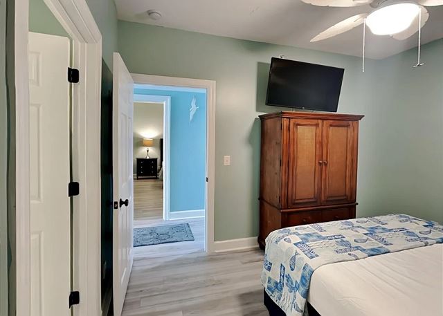 The primary bedroom is a serene sanctuary, featuring a luxurious king-sized bed, direct balcony access, and an ensuite bathroom with a double vanity for added comfort. The second bedroom also offers a king-sized bed and an adjoining bathroom, while the third bedroom has a queen-sized bed with its own private bathroom. For extra guests, the living room is equipped with a sofa sleeper, allowing Ocean Ritz 802 to accommodate up to eight guests comfortably.