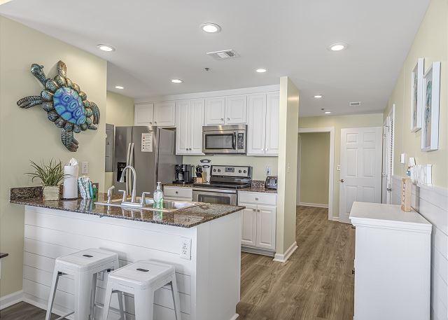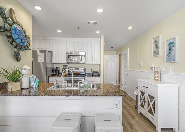 Beautifully decorated with all the comforts of a High End Vacation Rental. HD- Flat Screen TV's & DVD's in each room, washer & dryer, Fully equipped kitchen with all necessary pots & pans for cooking, coffee maker & other small appliances.