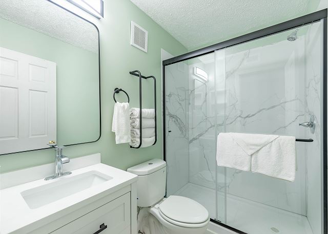 -3 bathrooms, 2 with walk in showers and 1 with a shower/tub combo.