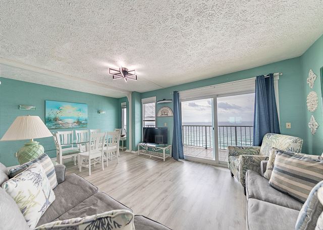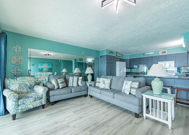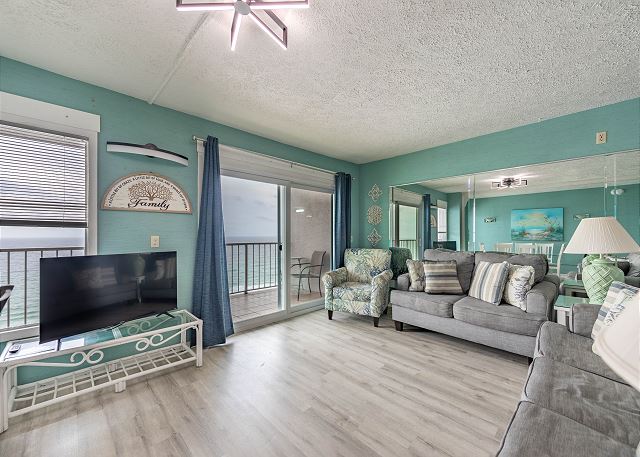 -Gulf front living room with a sleeper sofa