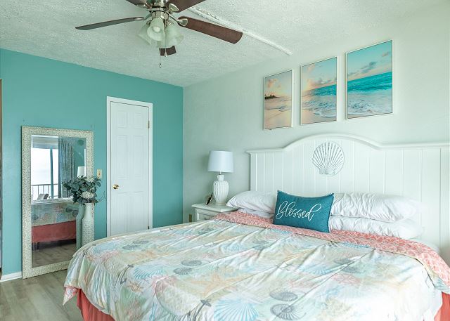 -Master bedroom with a king size bed.
