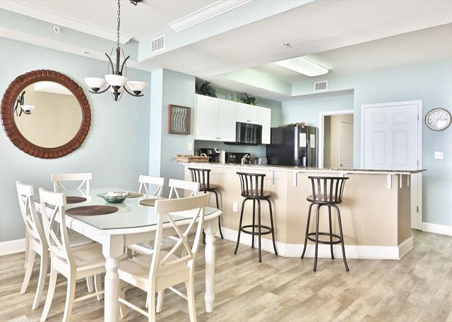 The comfort of our guests is most important to us, we have furnished our spacious unit with everything you would expect and deserve while on vacation. The living room features a brand new 55 inch flat screen TV with cable . Each bedroom has flat screen TVs of their own. The open kitchen area looks out over the beautiful blue gulf water and is fully stocked with vacation rental cookware, dishes, glasses, utensils and appliances.