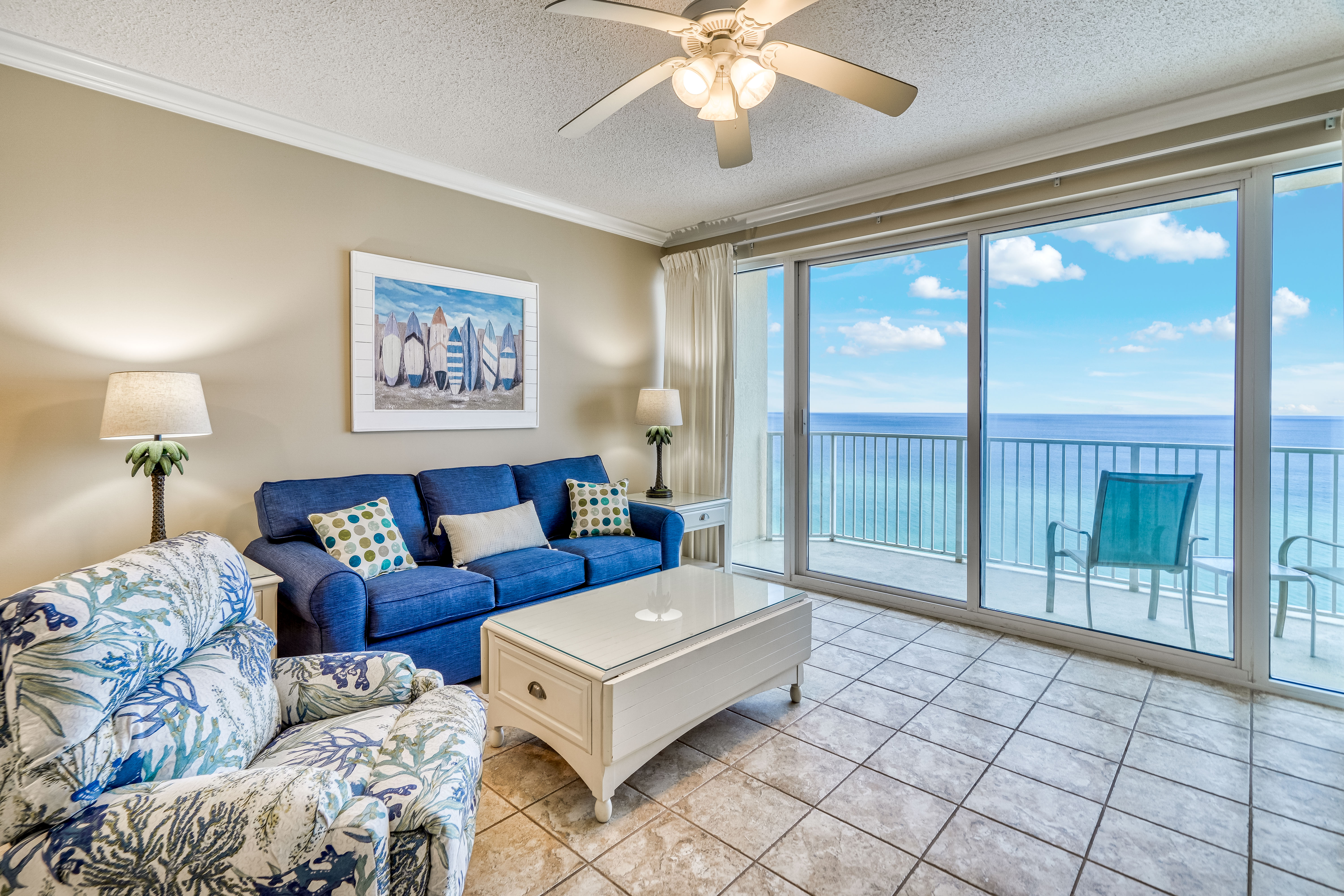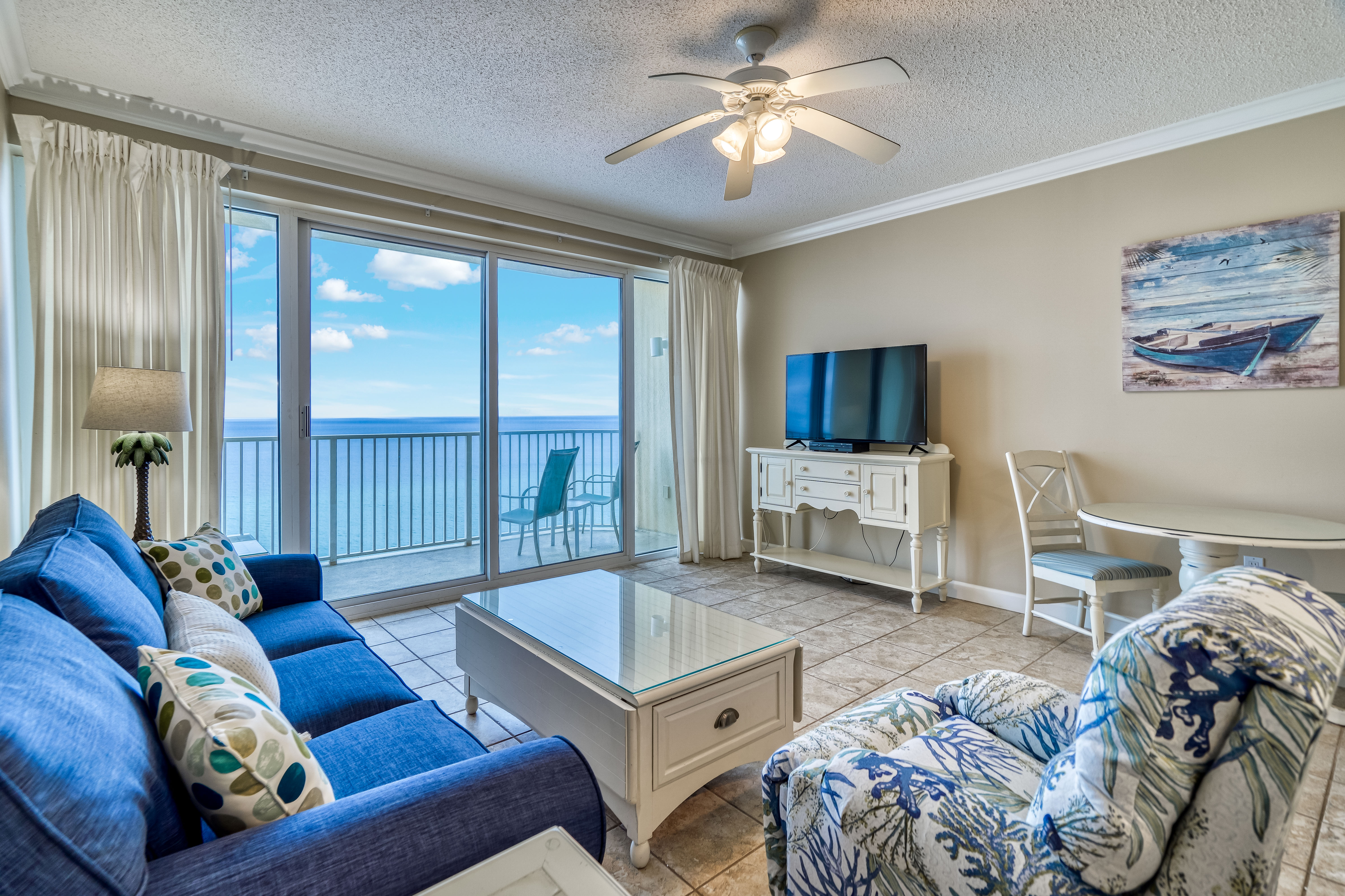 We loved our condo at the boardwalk! We were on the 14th floor and had an amazing view of the ocean. Plenty of space for our family of 5. All the staff around was very helpful if needed and I love the 24 hr security guard service. Everyone provided good service if needed. There was a little bar and grill beside the pool that was on the property and it was wonderful as well. Also a little corner store if you wanted a quick snack or a yummy pizza. The condominium was in the perfect location. 2 minute drive to pineapple Willys, 4 minute drive to Walmart and a gas station. Several places to eat close by. 5 minutes from places like wonderworks and mini golf. 20 minutes from pier park to do some fishing and shopping! All in all we had a wonderful time at PCB for our vacation. The first couple days the water in the ocean wasn’t that clear but it ended up clearing up the rest of the week and was perfect, the beach wasn’t extremely packed either so that was a plus! Only thing I would have changed about our condo is the dish washer, it’s a little old and u was nervous to use it but it still works great and got the dishes clean! We will definitely be back to stay at the boardwalk!!