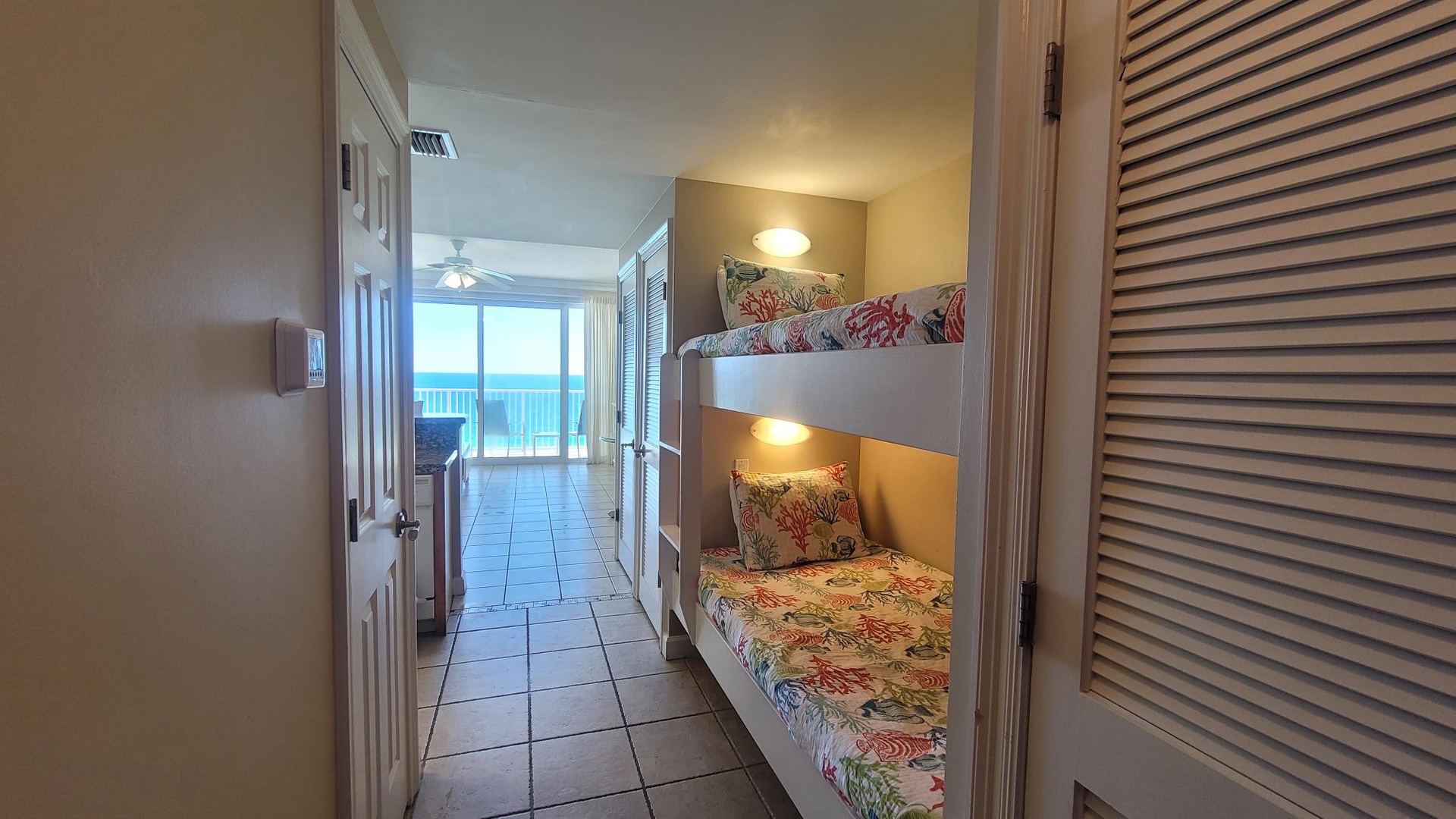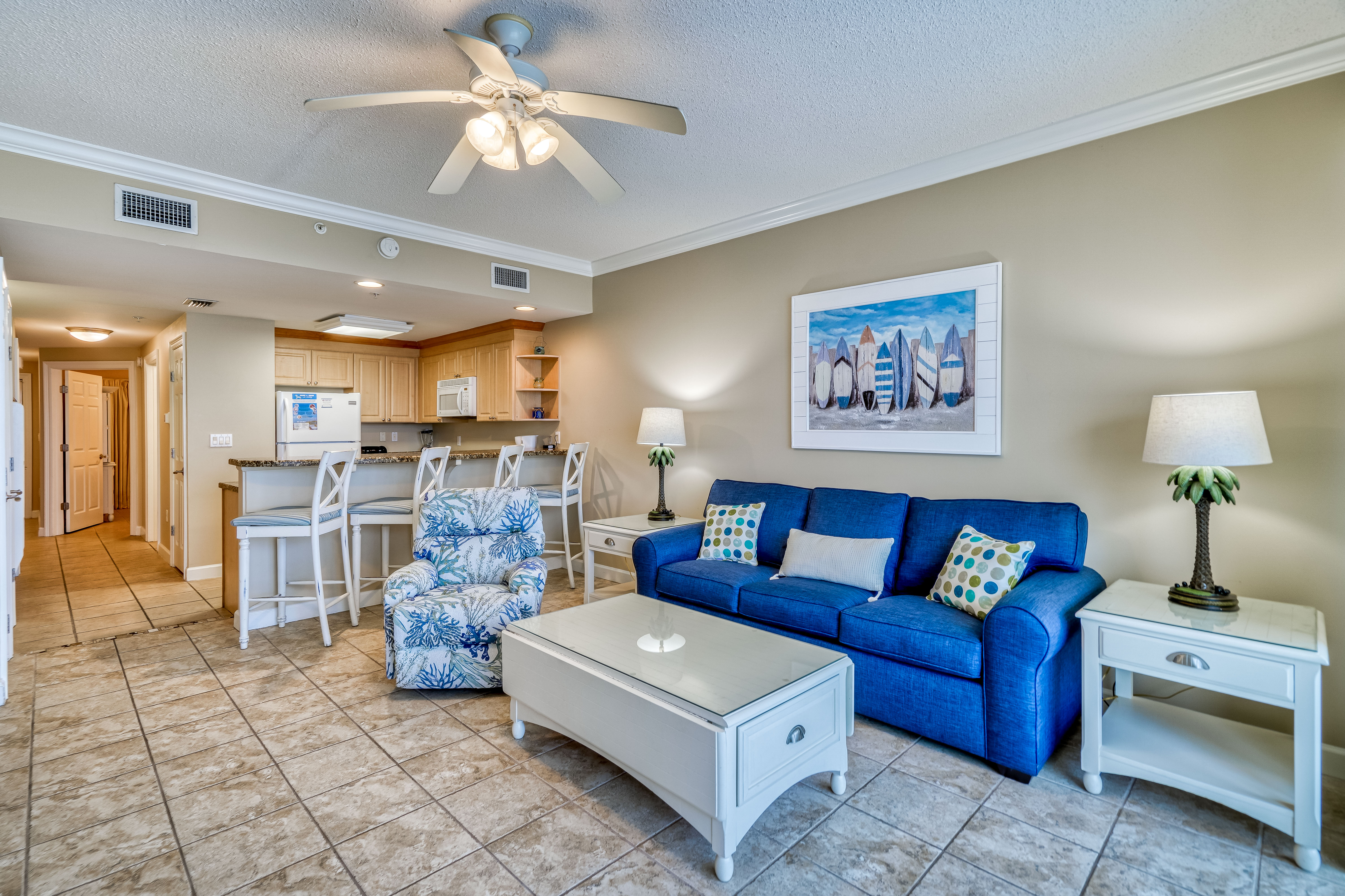 With so much to do, you may not spend much time in your room! But when you do, Boardwalk Beach Resort Condominium 1407 won't disappoint. This one bedroom, one bathroom hideaway sleeps up to six and features a comfy queen bed in the master bedroom, fun, built-in bunks in the hallway plus a queen sleeper sofa in the spacious living room. Best of all, a large, modern kitchen enables you to save money for fun by preparing your own meals.