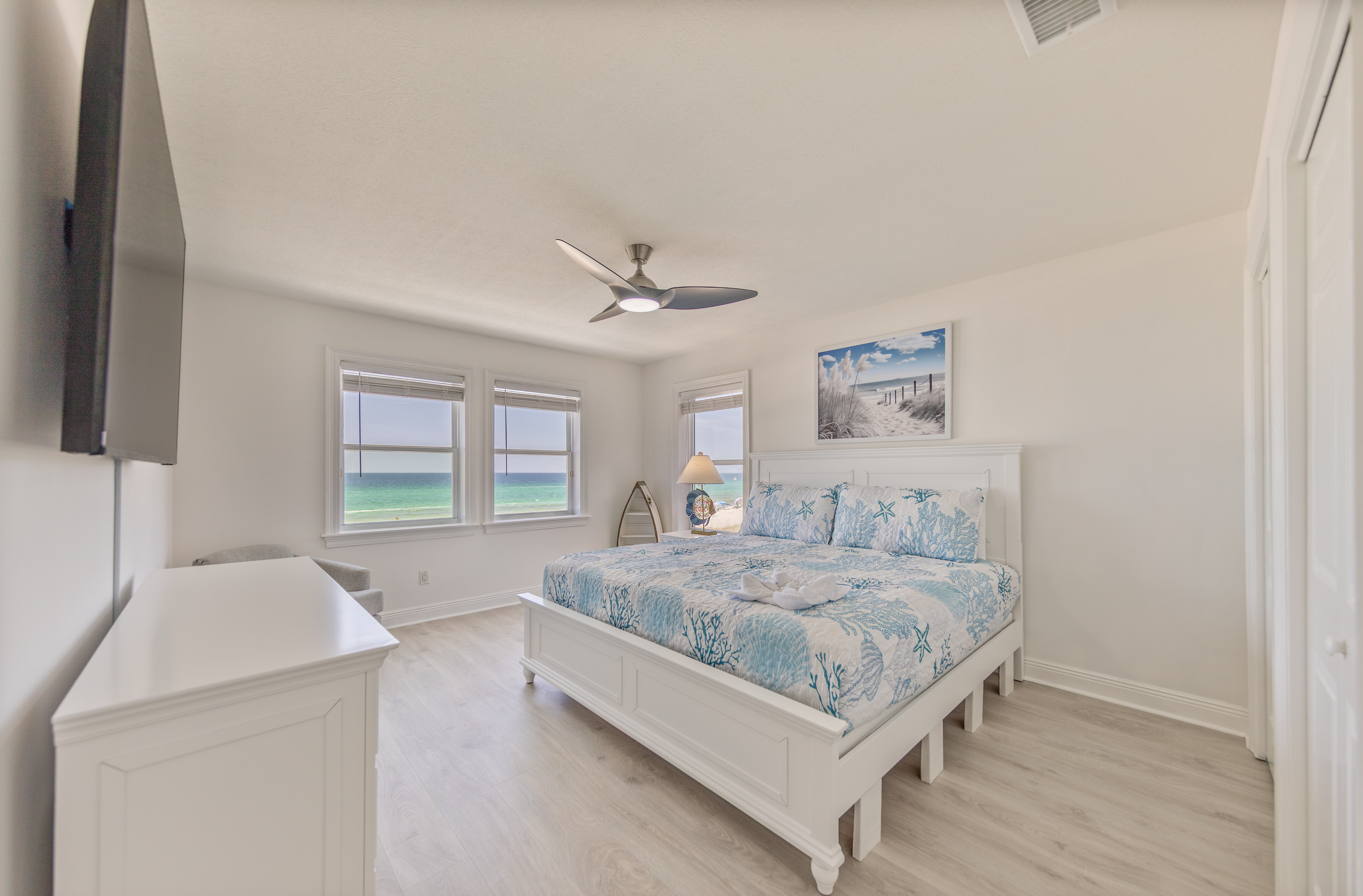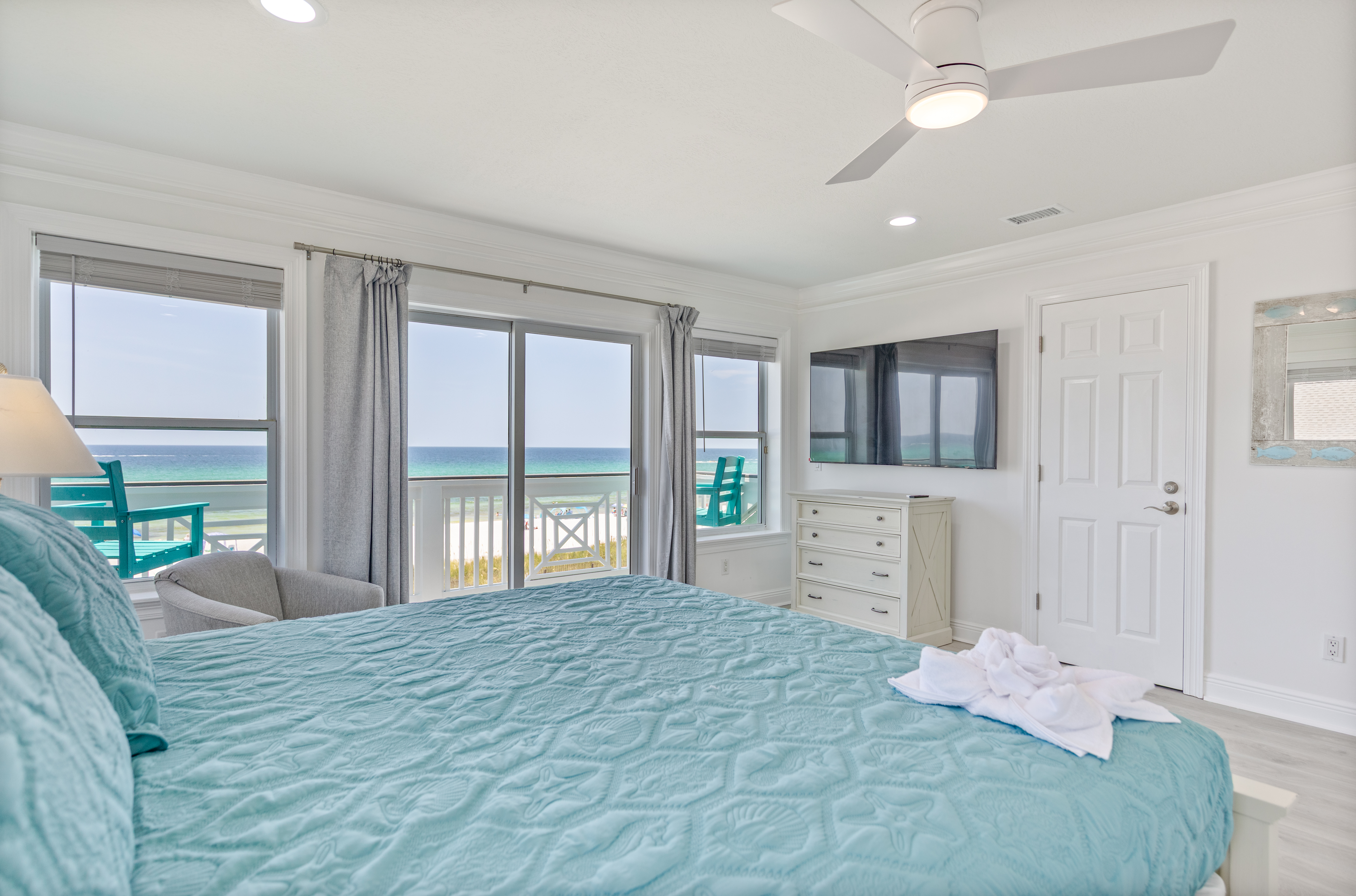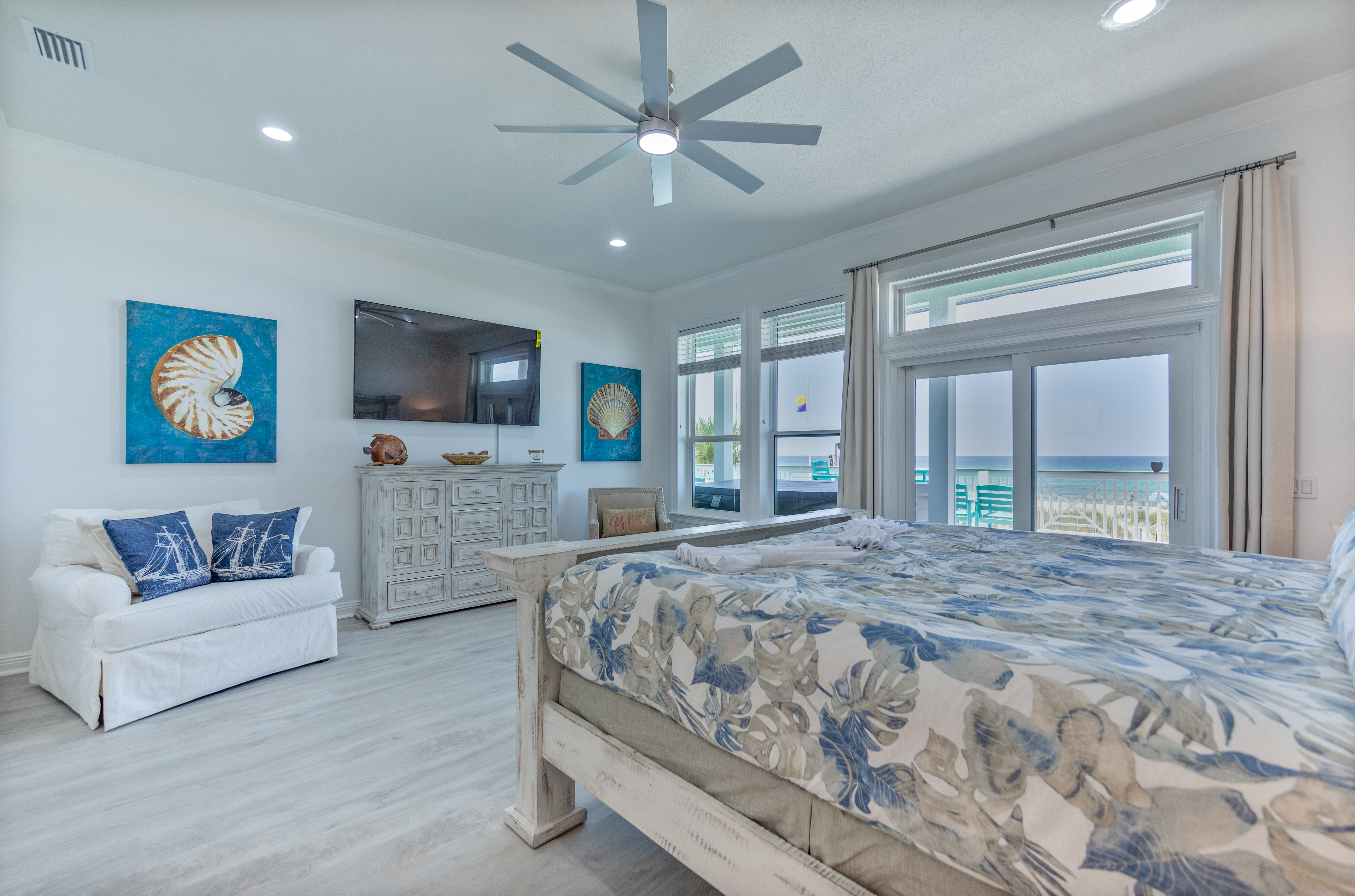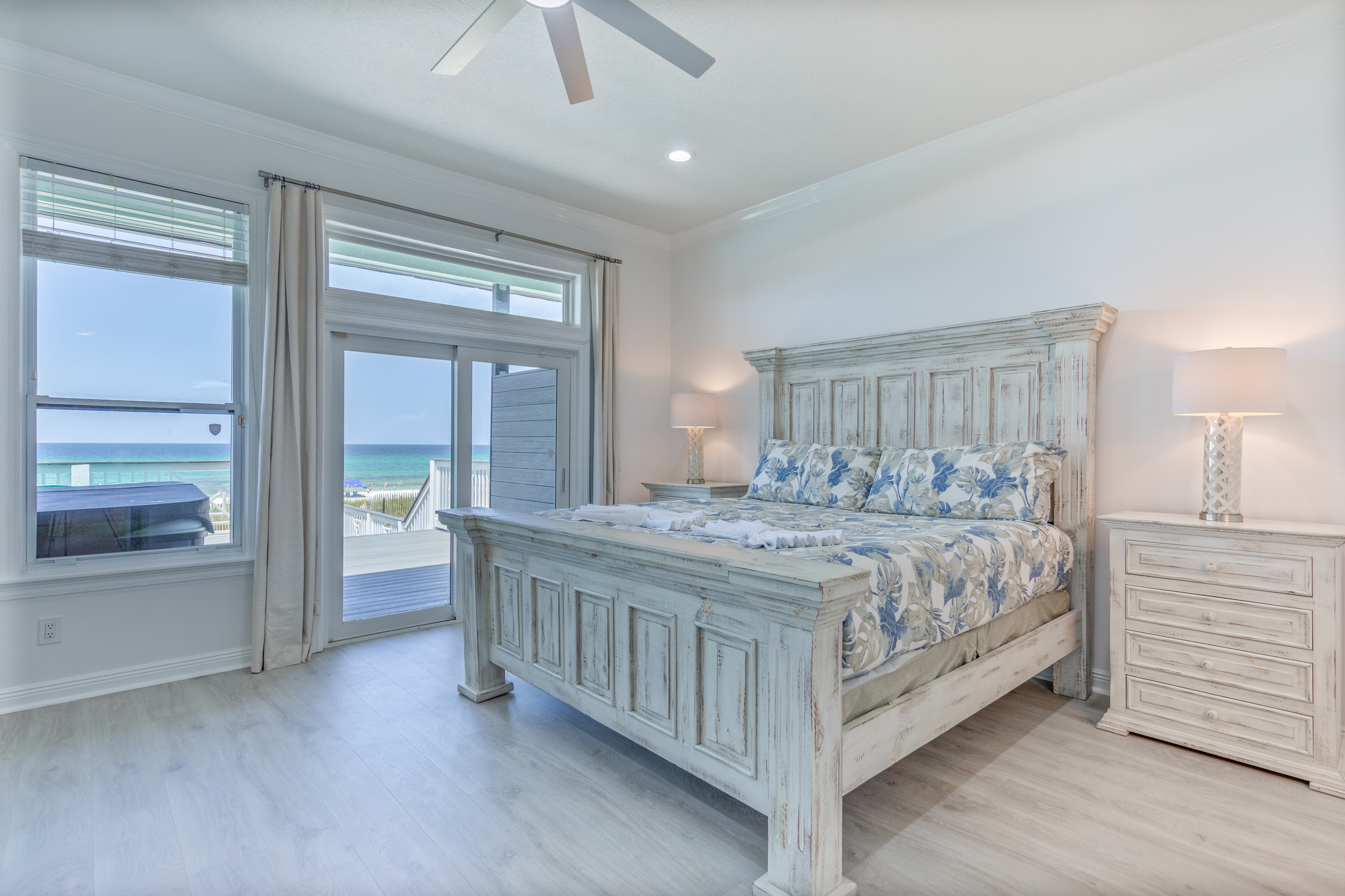 Exterior Gulf front master bedroom with a king size bed