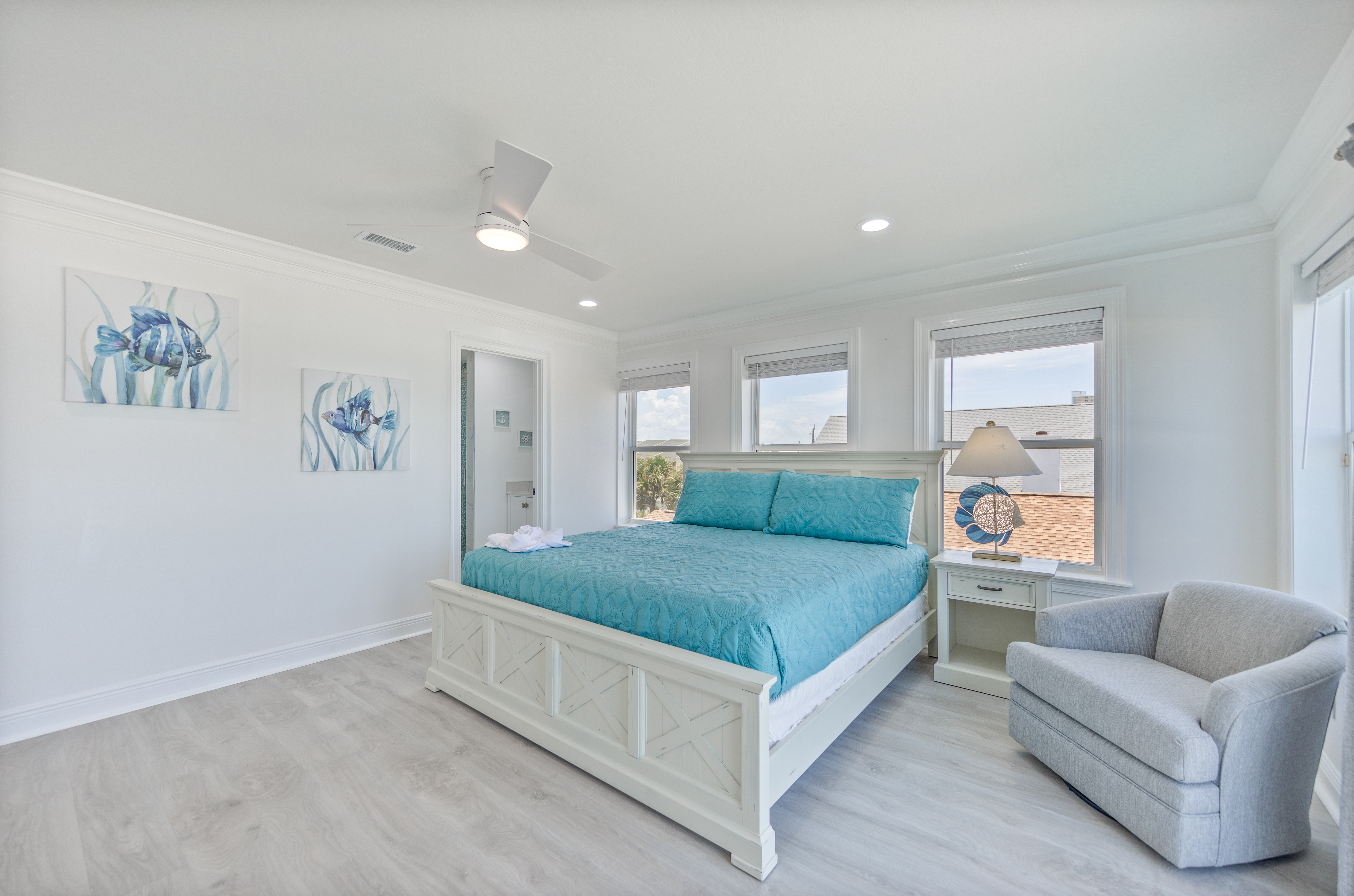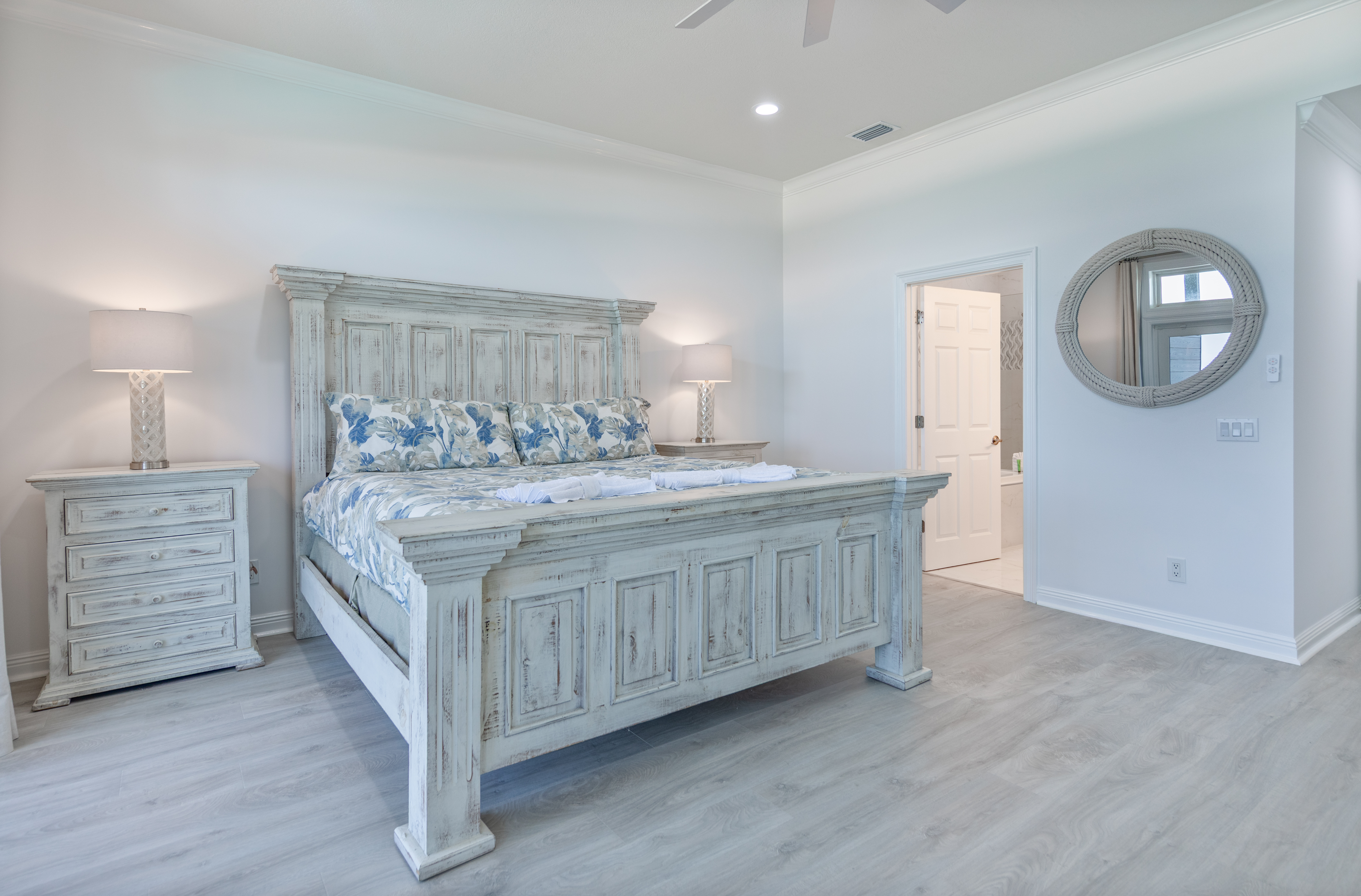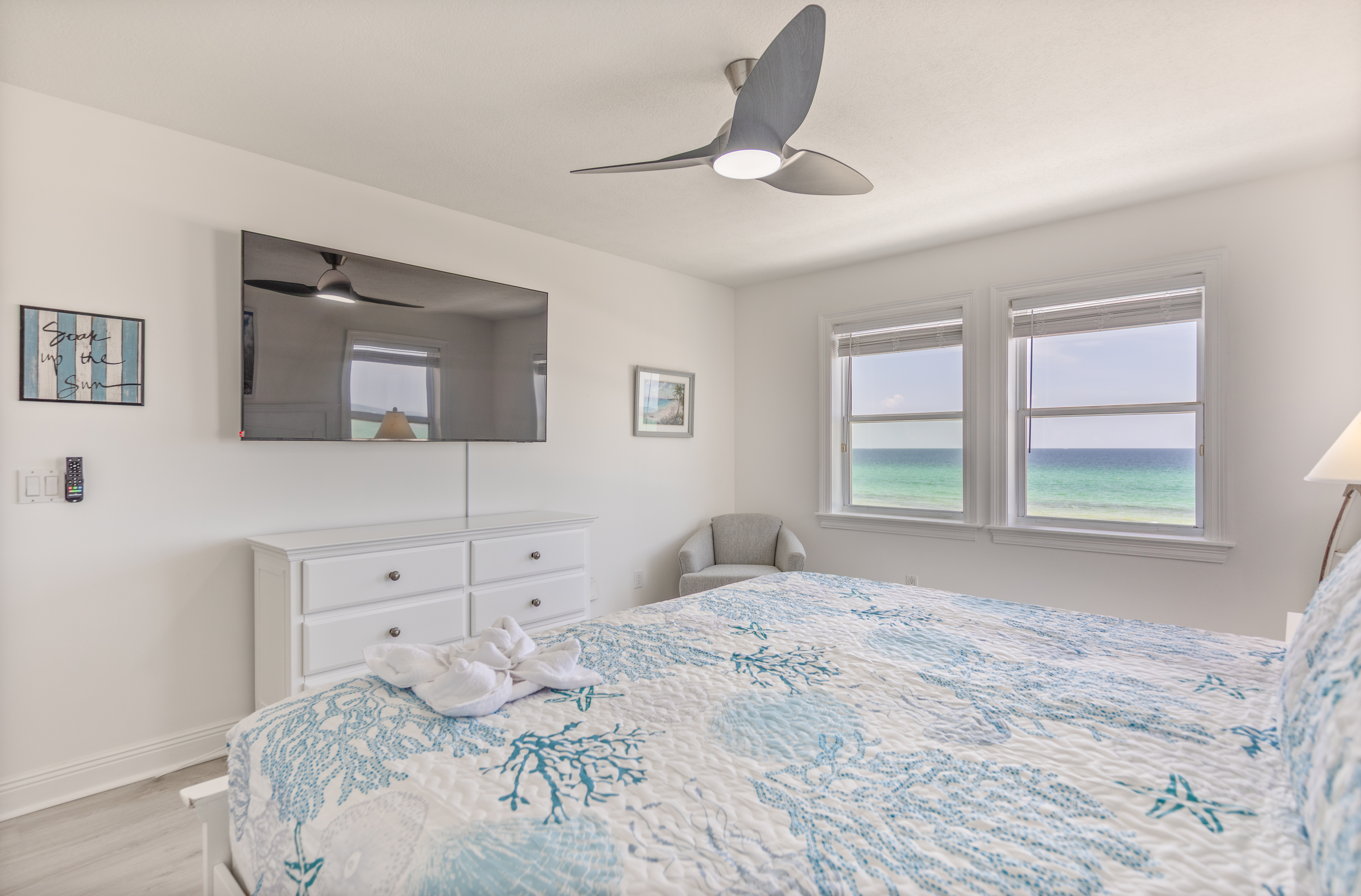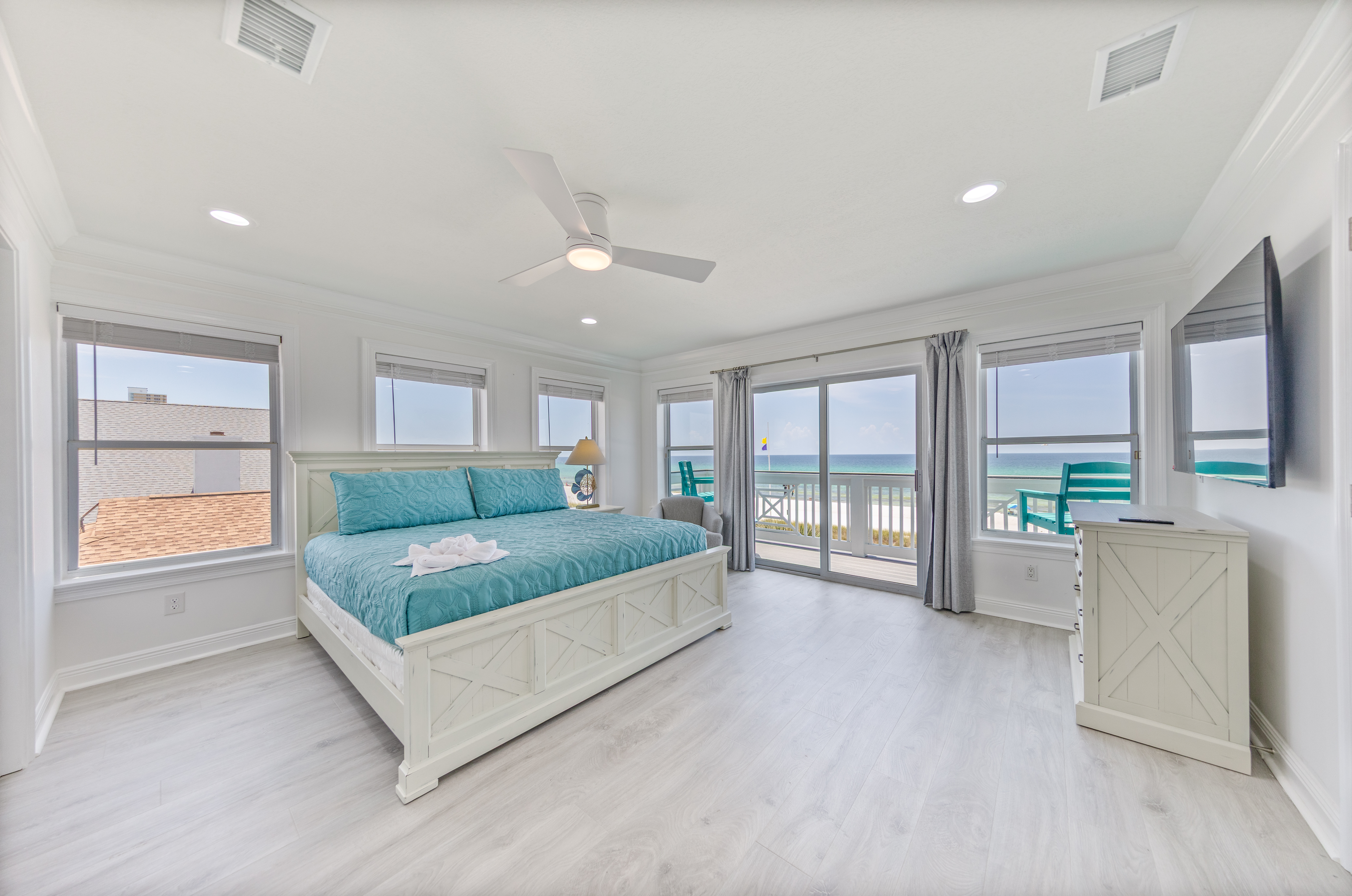 Exterior Gulf front master bedroom with a king size bed