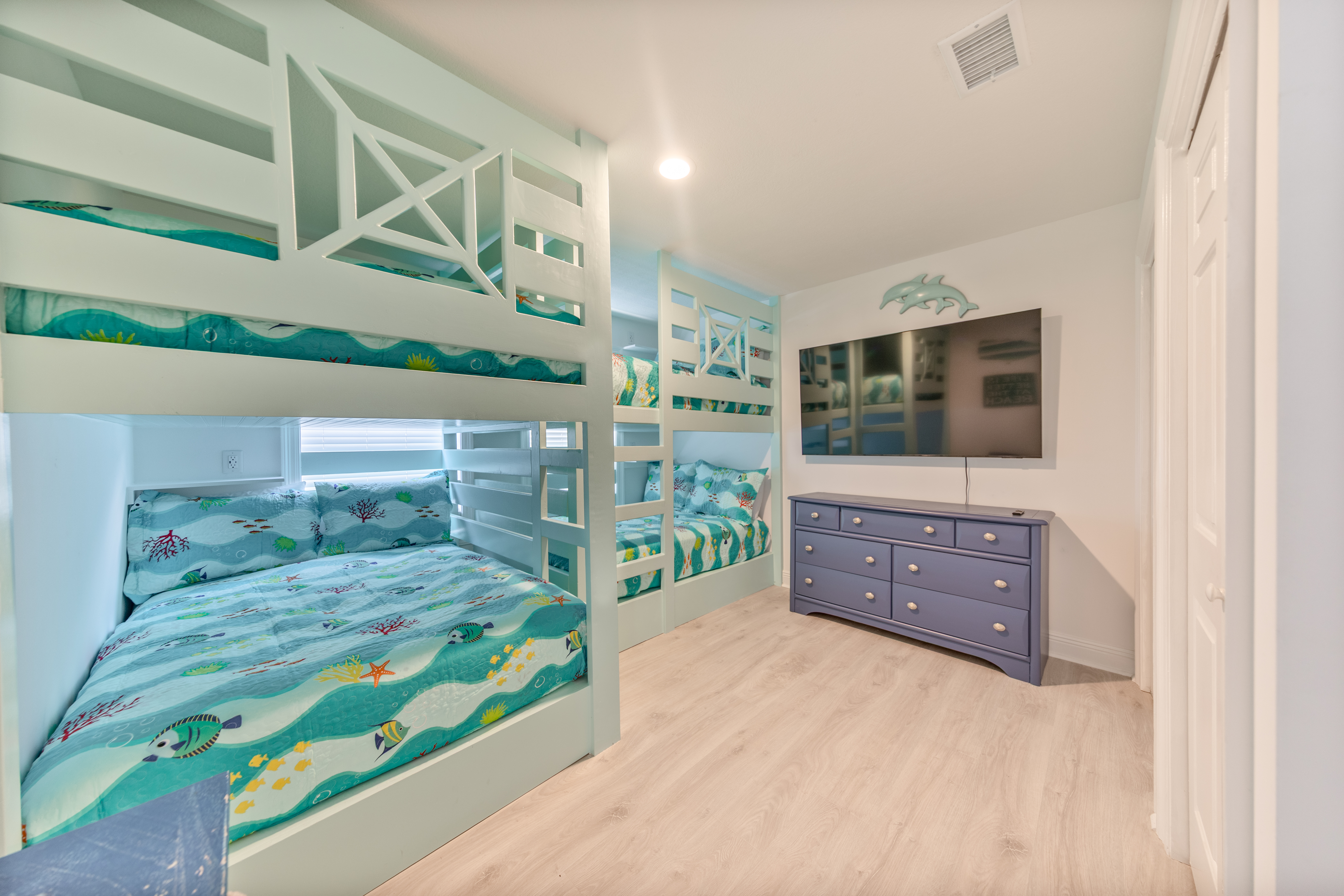 Exterior Ground floor bunkroom with a triple full size bunkbed.
