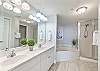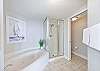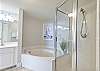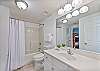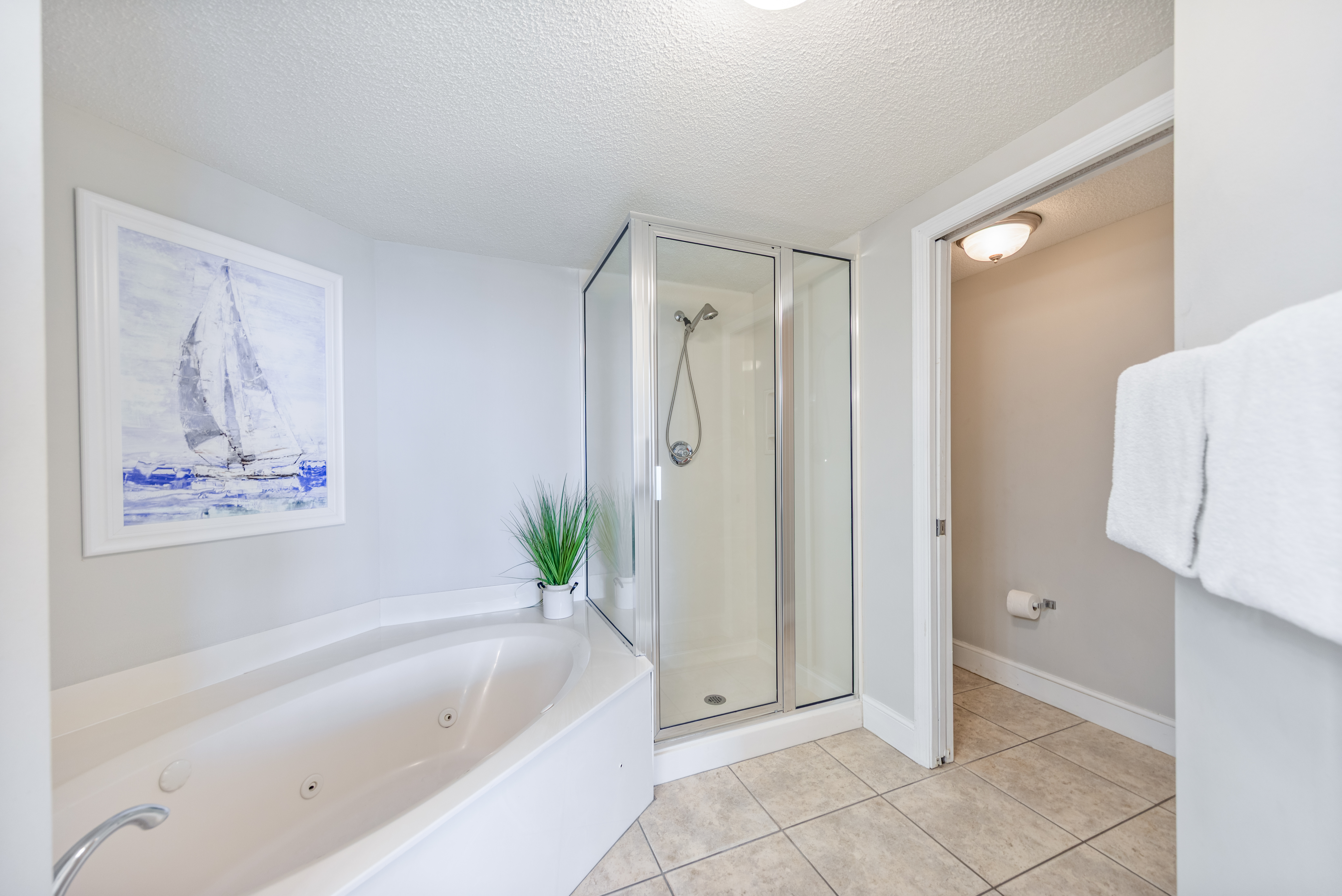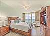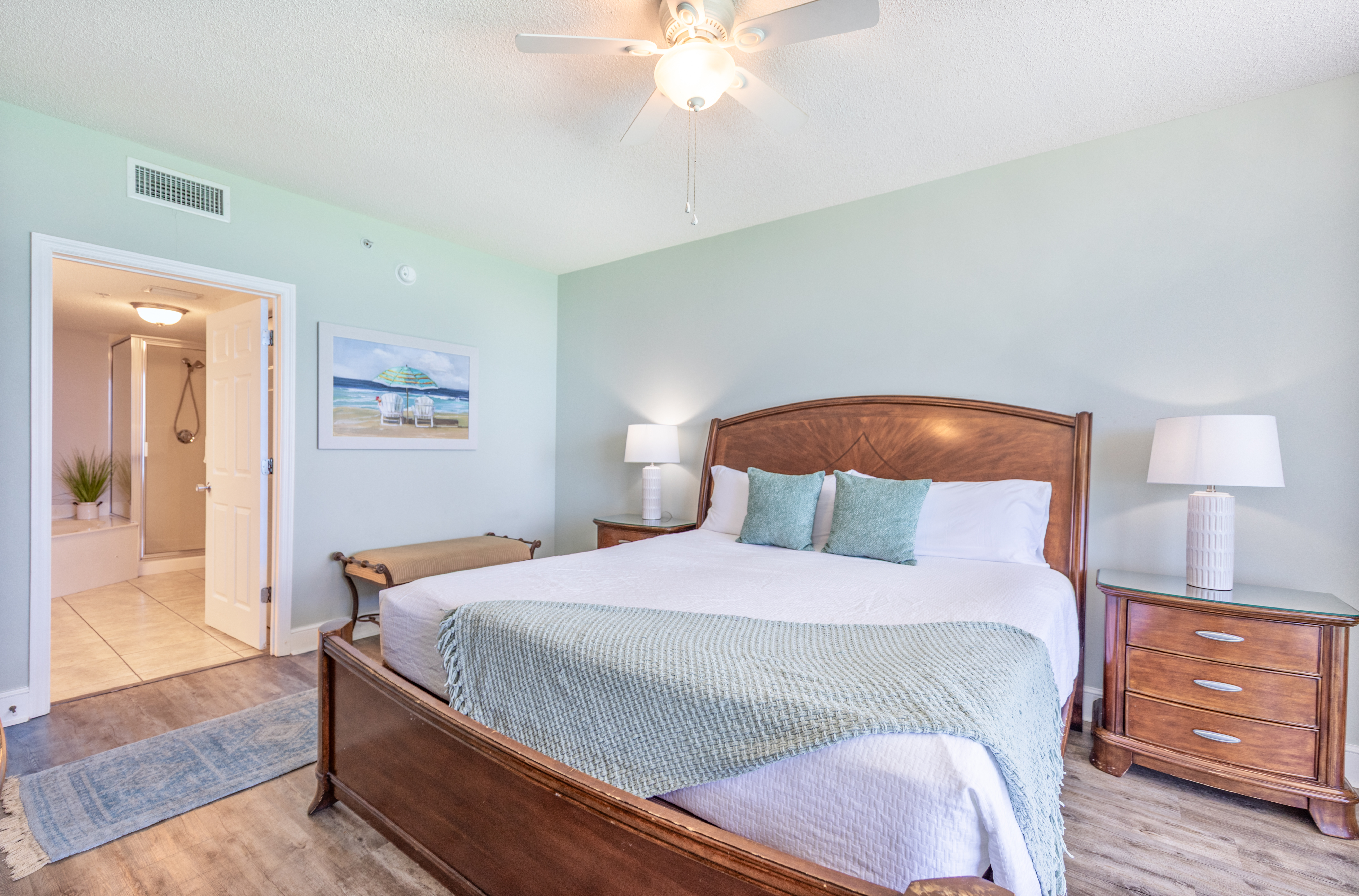– Gulf-front Master Suite – King bed, direct balcony access, flat-screen TV, and a spa-like en suite bathroom with Jacuzzi tub and separate shower.