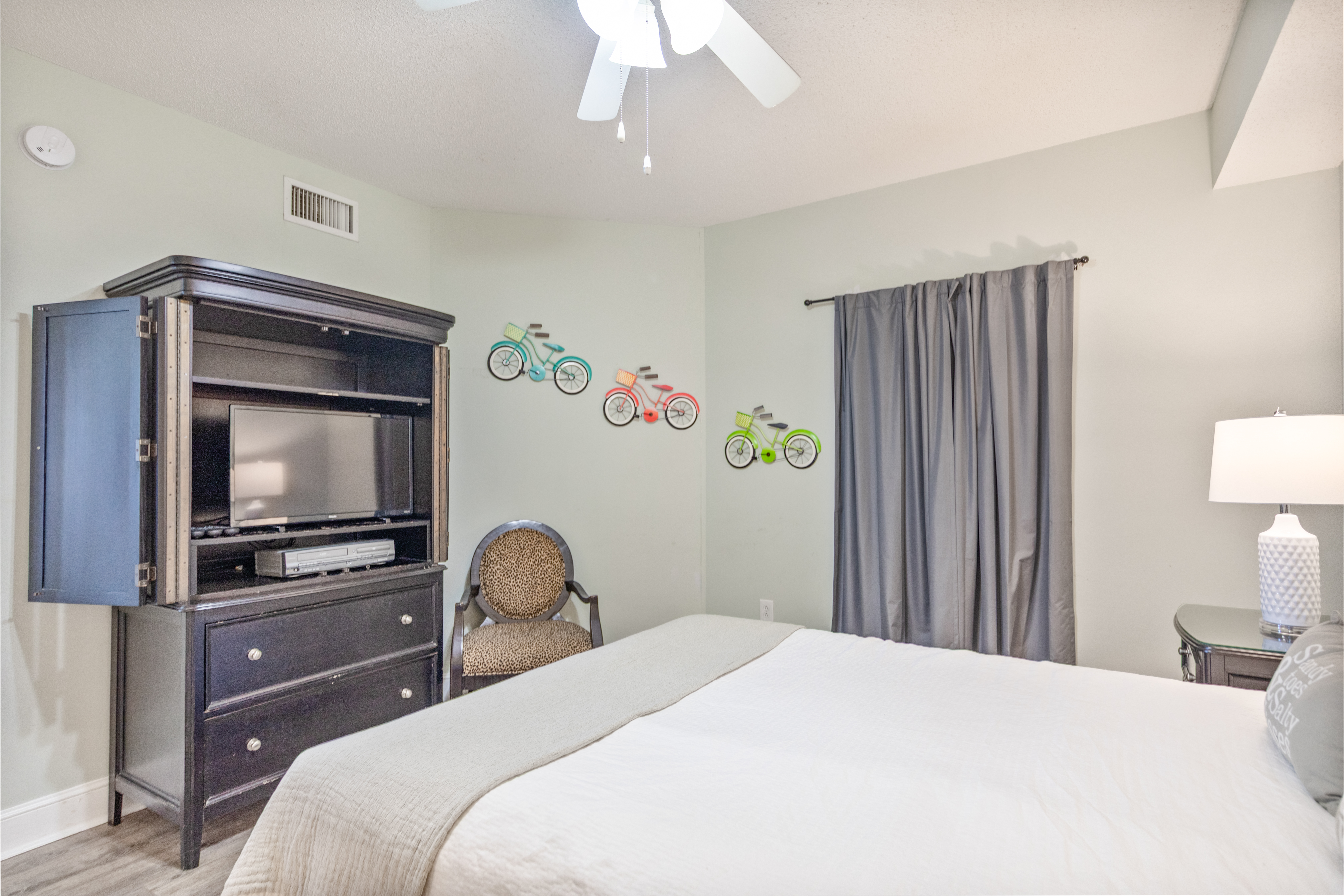 – Second Bedroom – Queen bed, flat-screen TV, and its own private balcony.