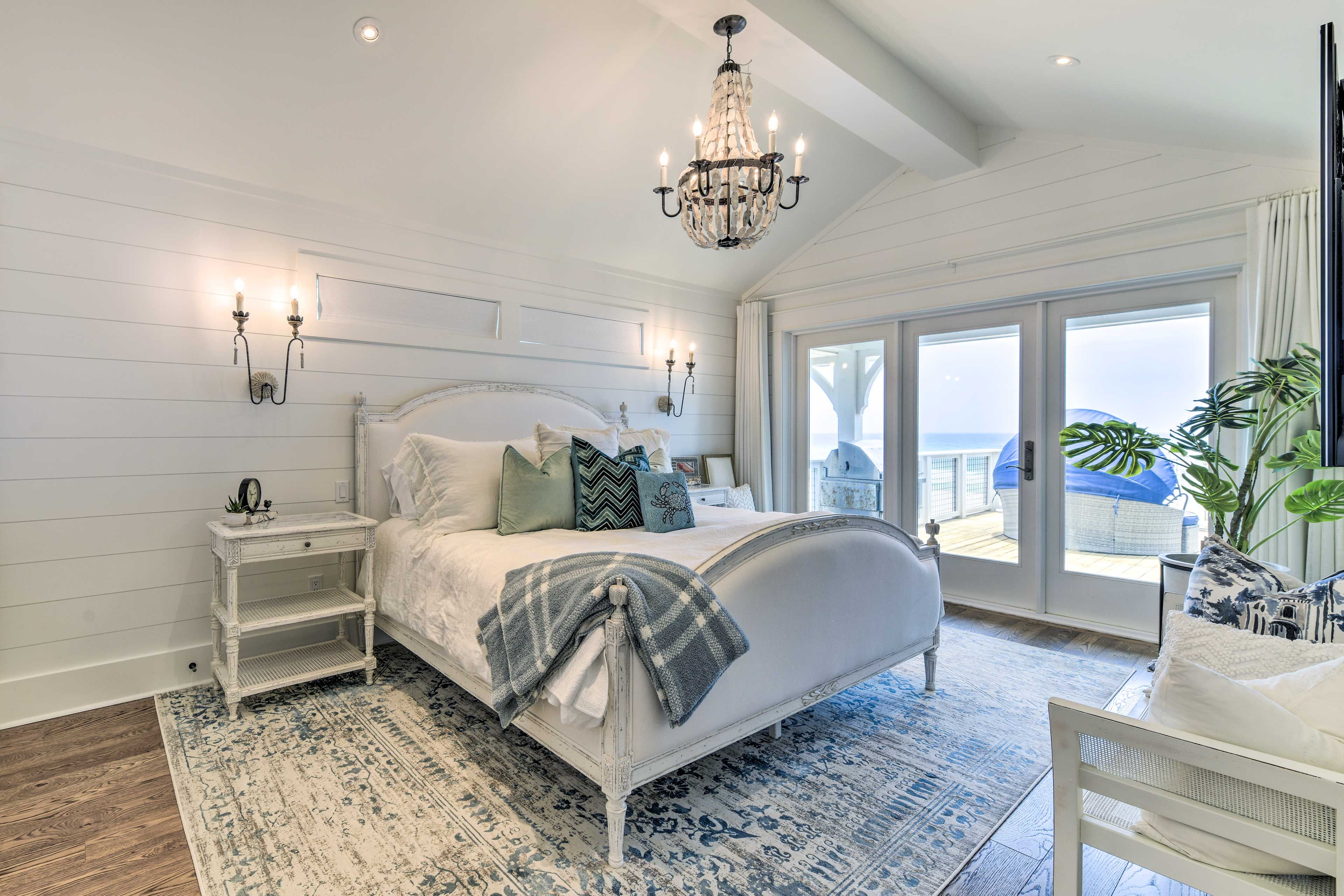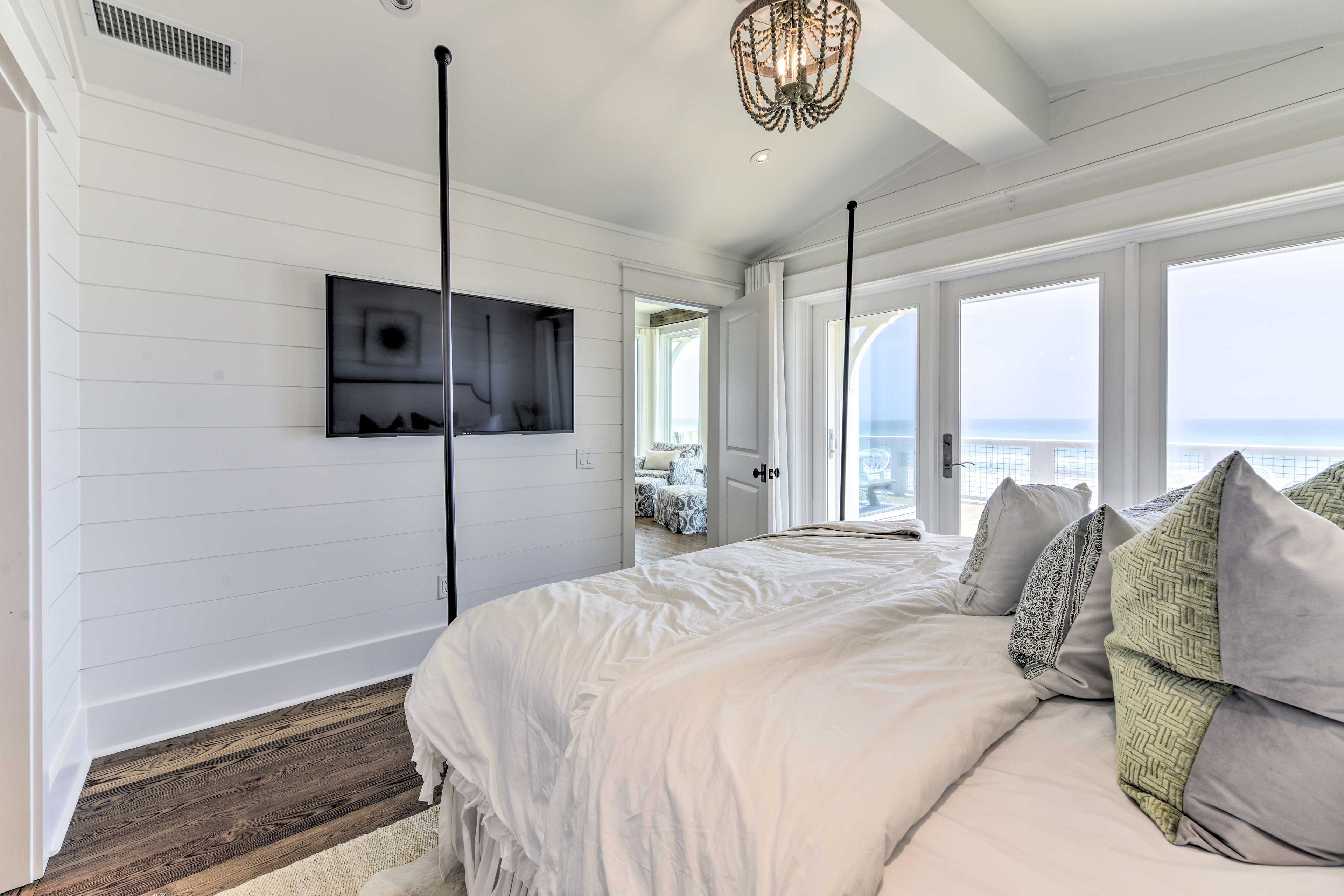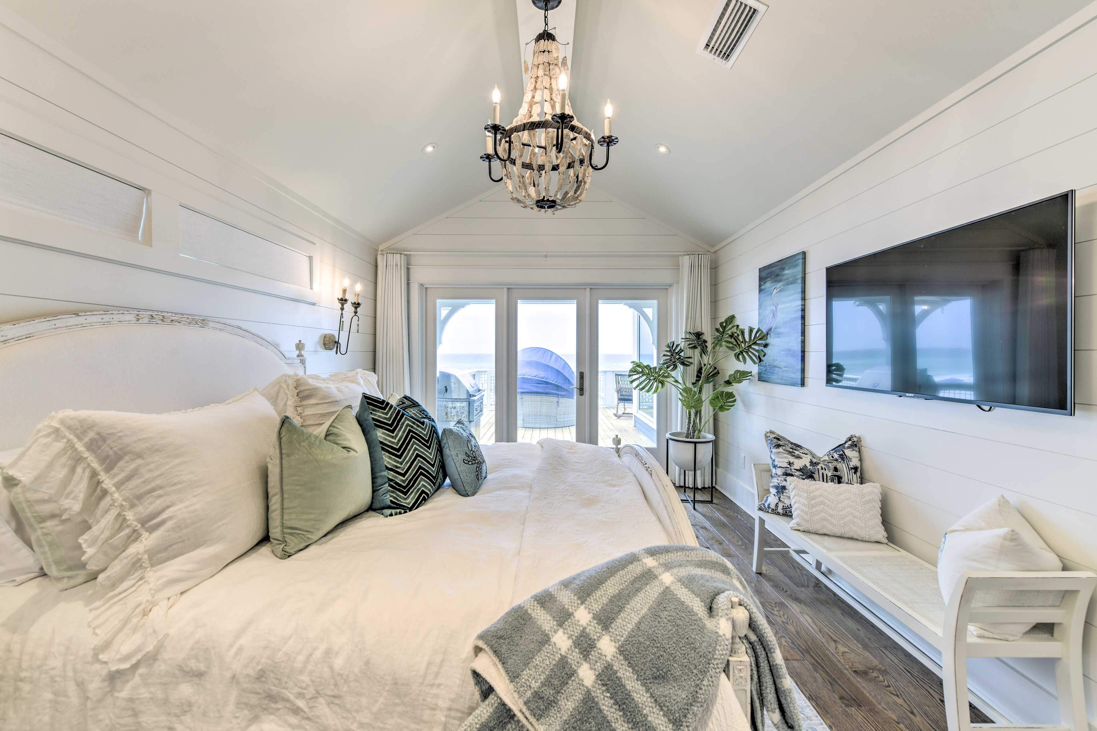 Exterior Gulf Front Master Bedroom with a King Size Bed.