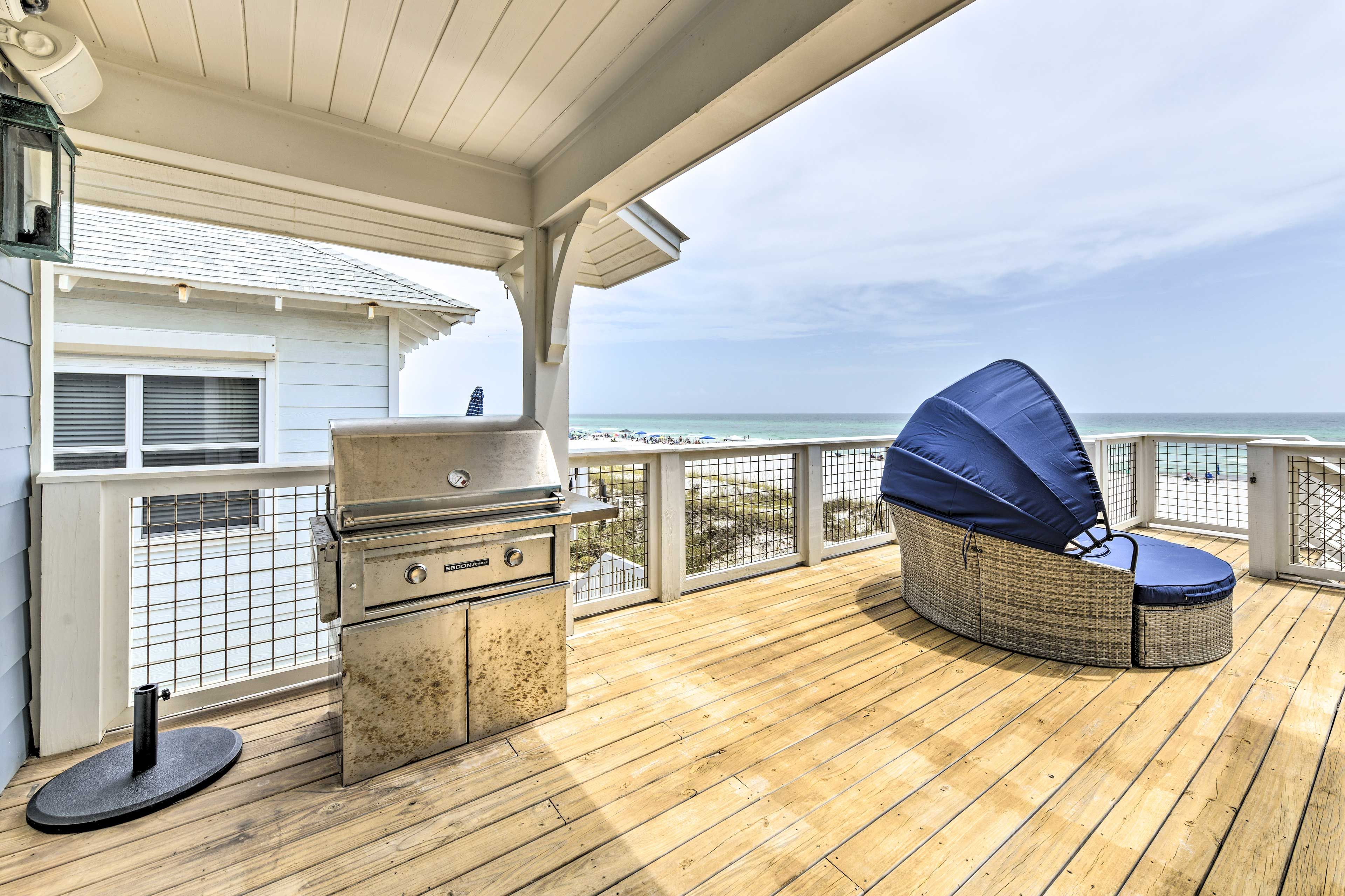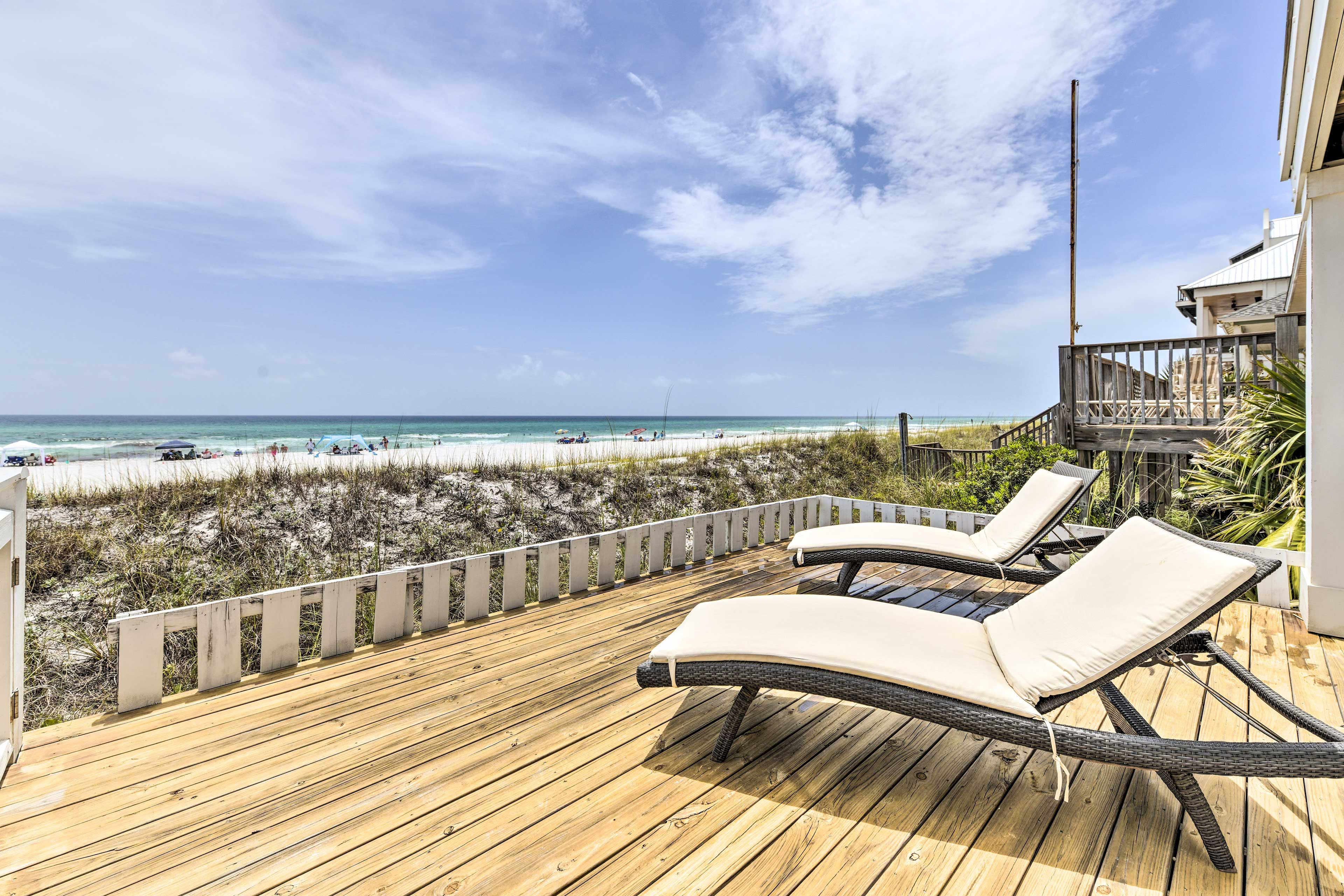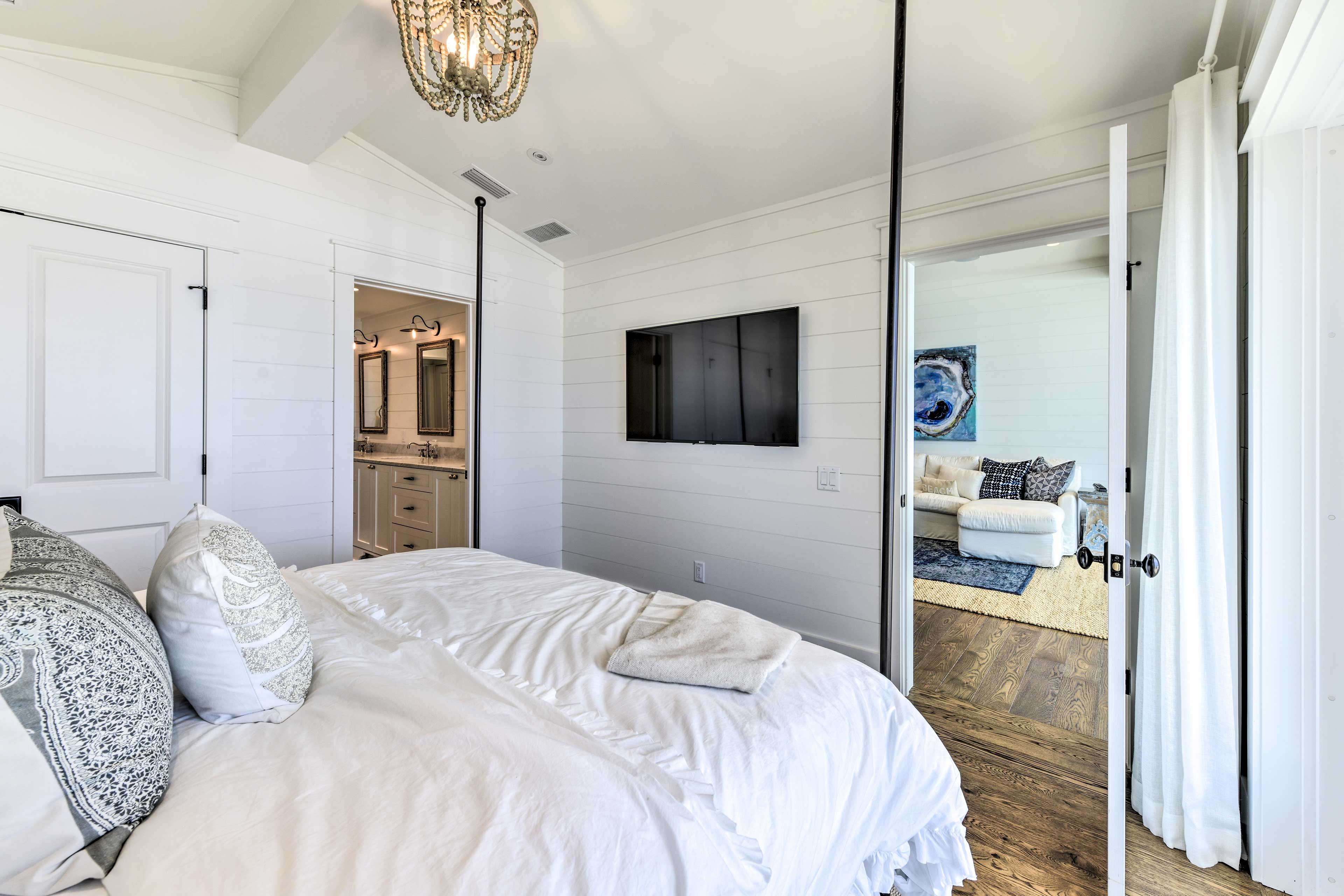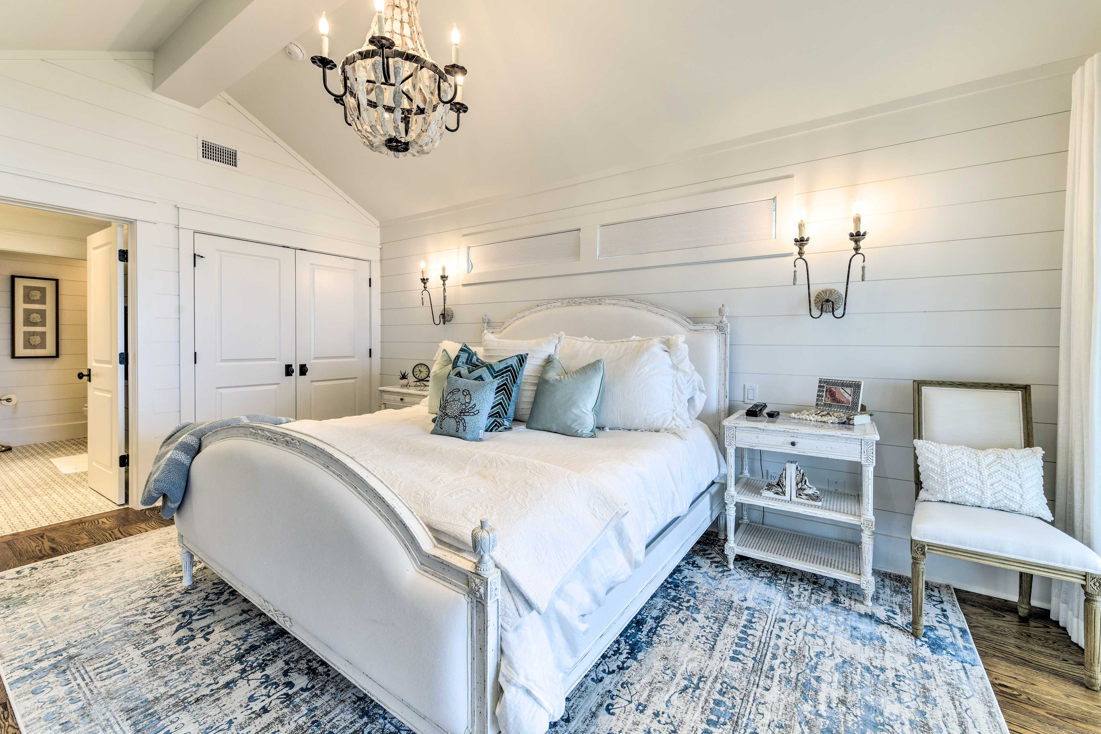 Exterior Gulf Front Master Bedroom with a King Size Bed.