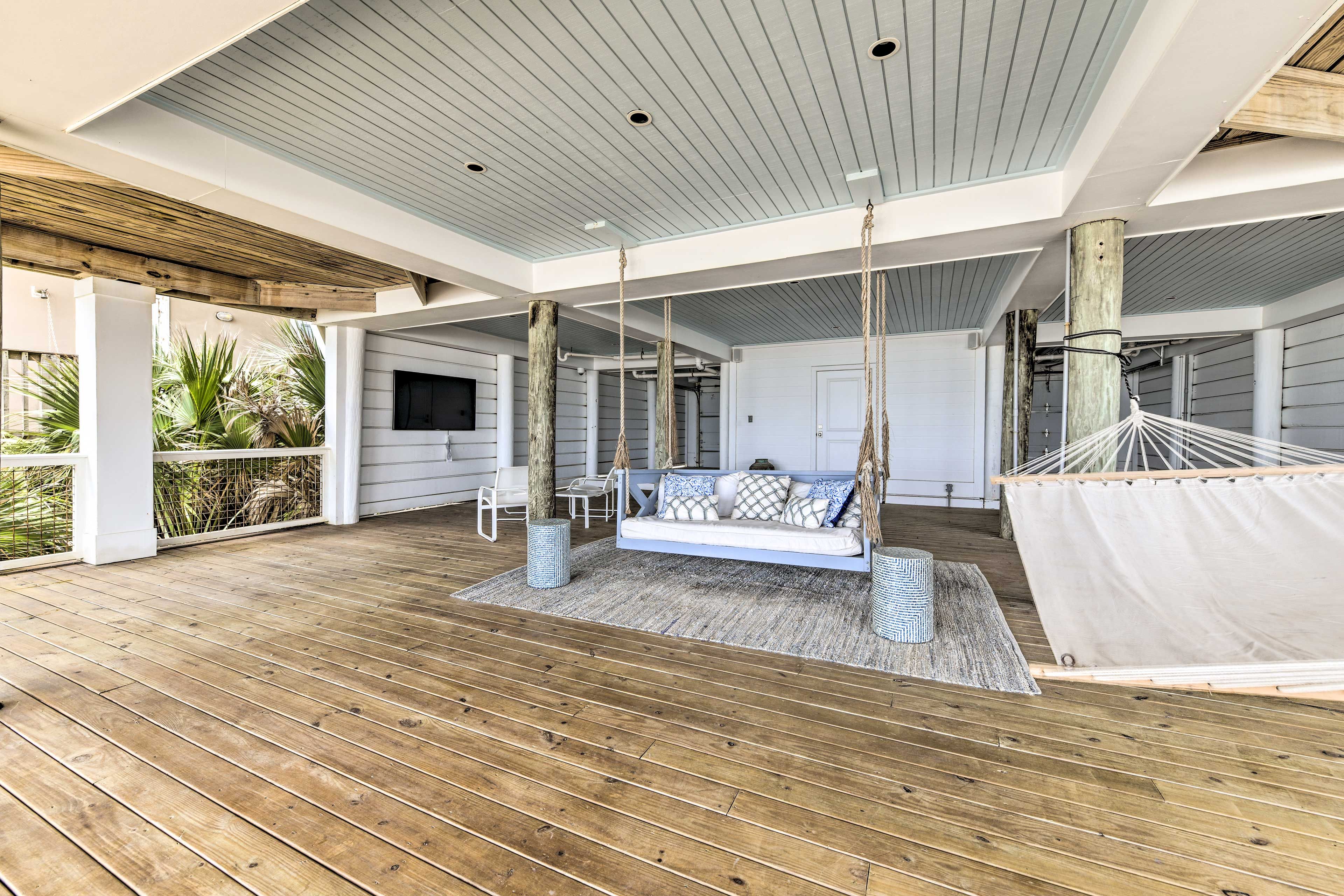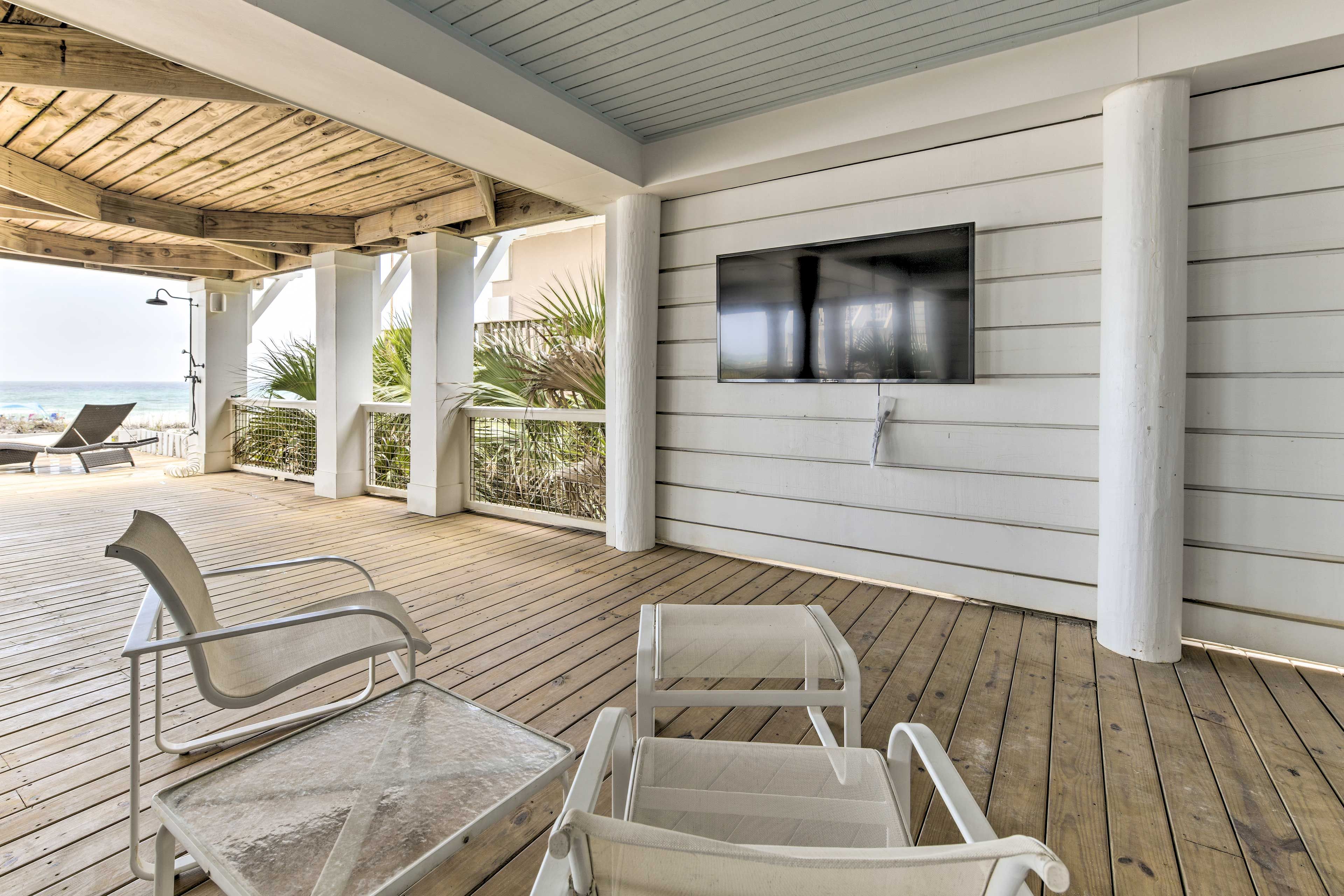 Exterior Elegant Living Room with Breathtaking Views of the Gulf.